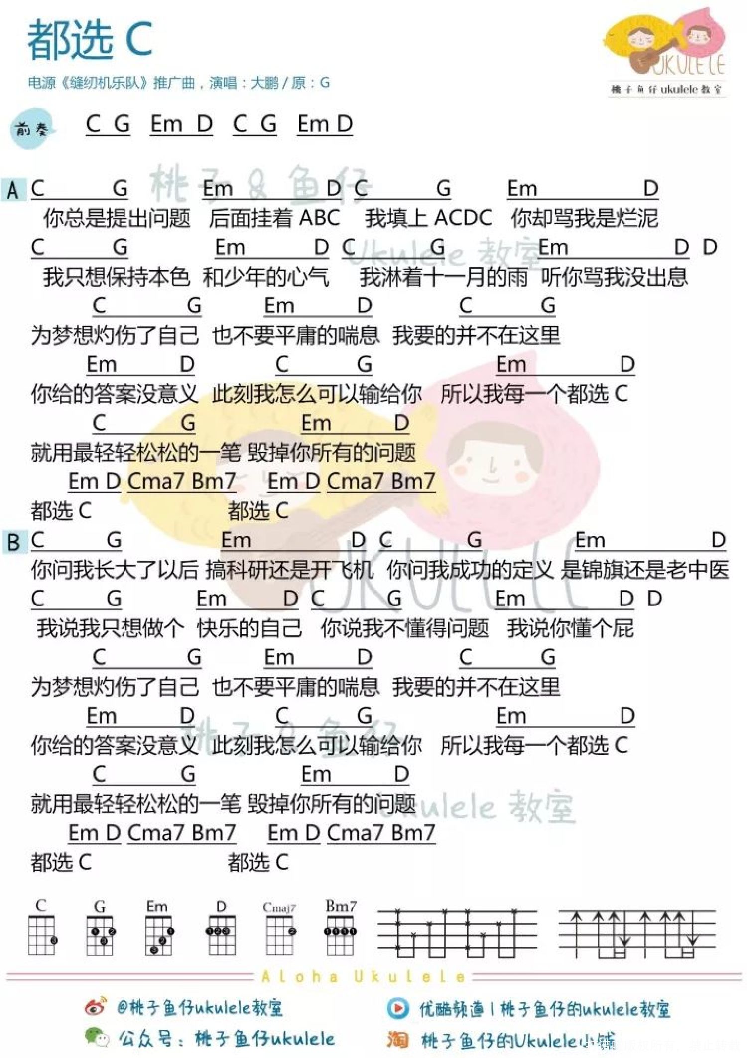 都选C尤克里里谱 - 大鹏