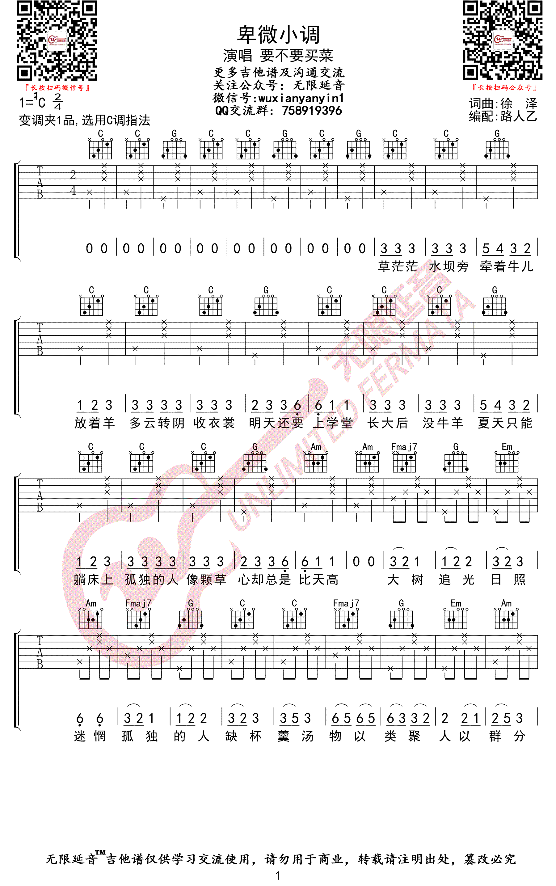 卑微小调吉他谱 - 要不要买菜 - 吉他弹唱谱