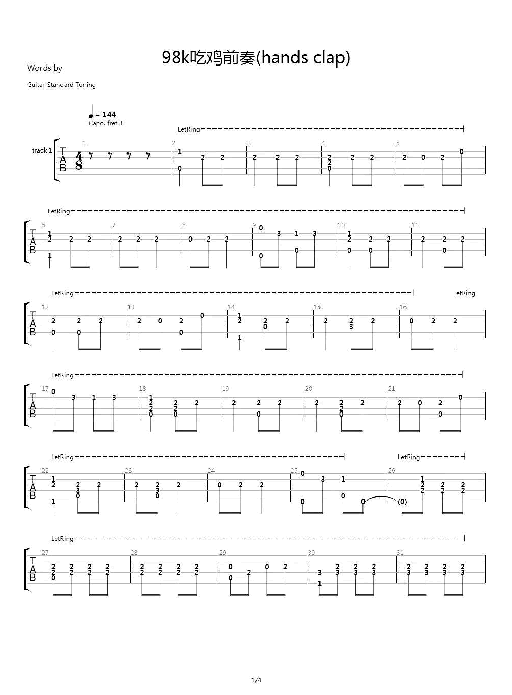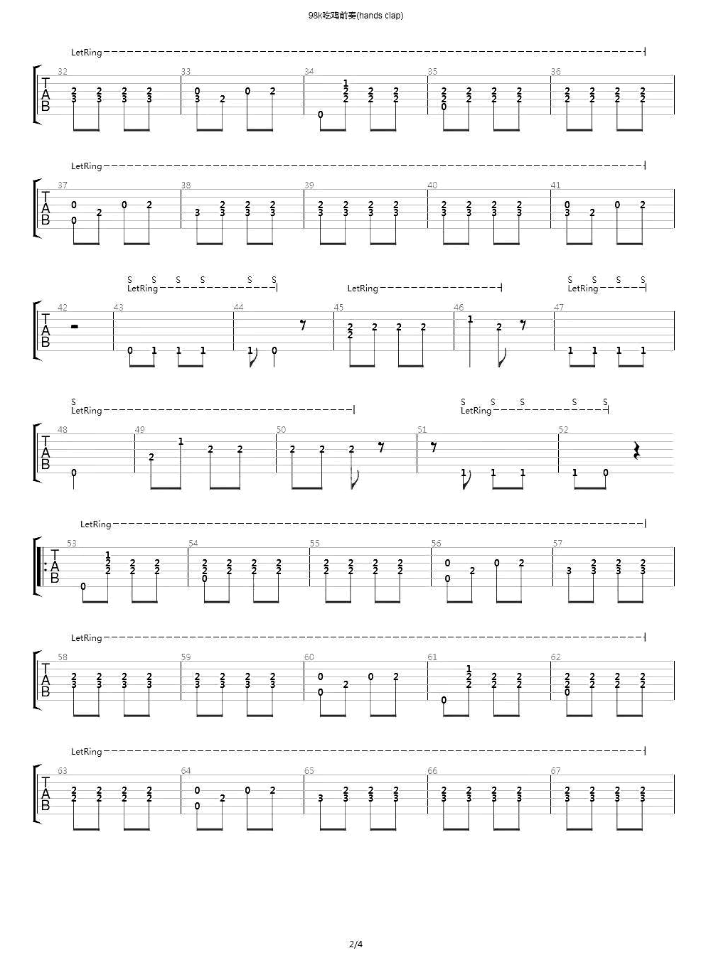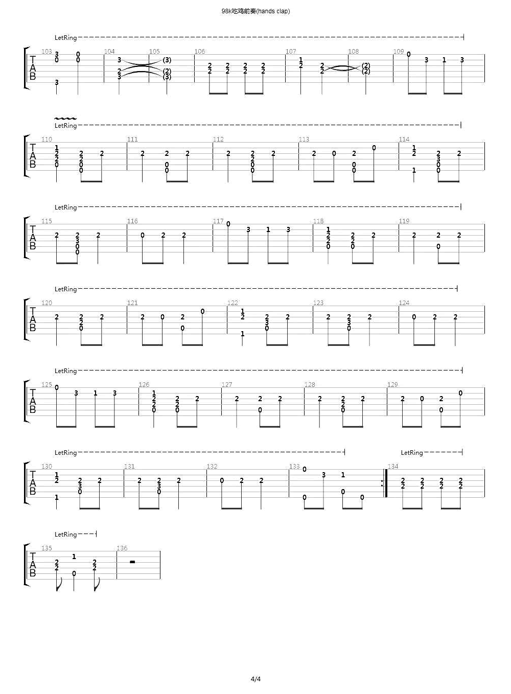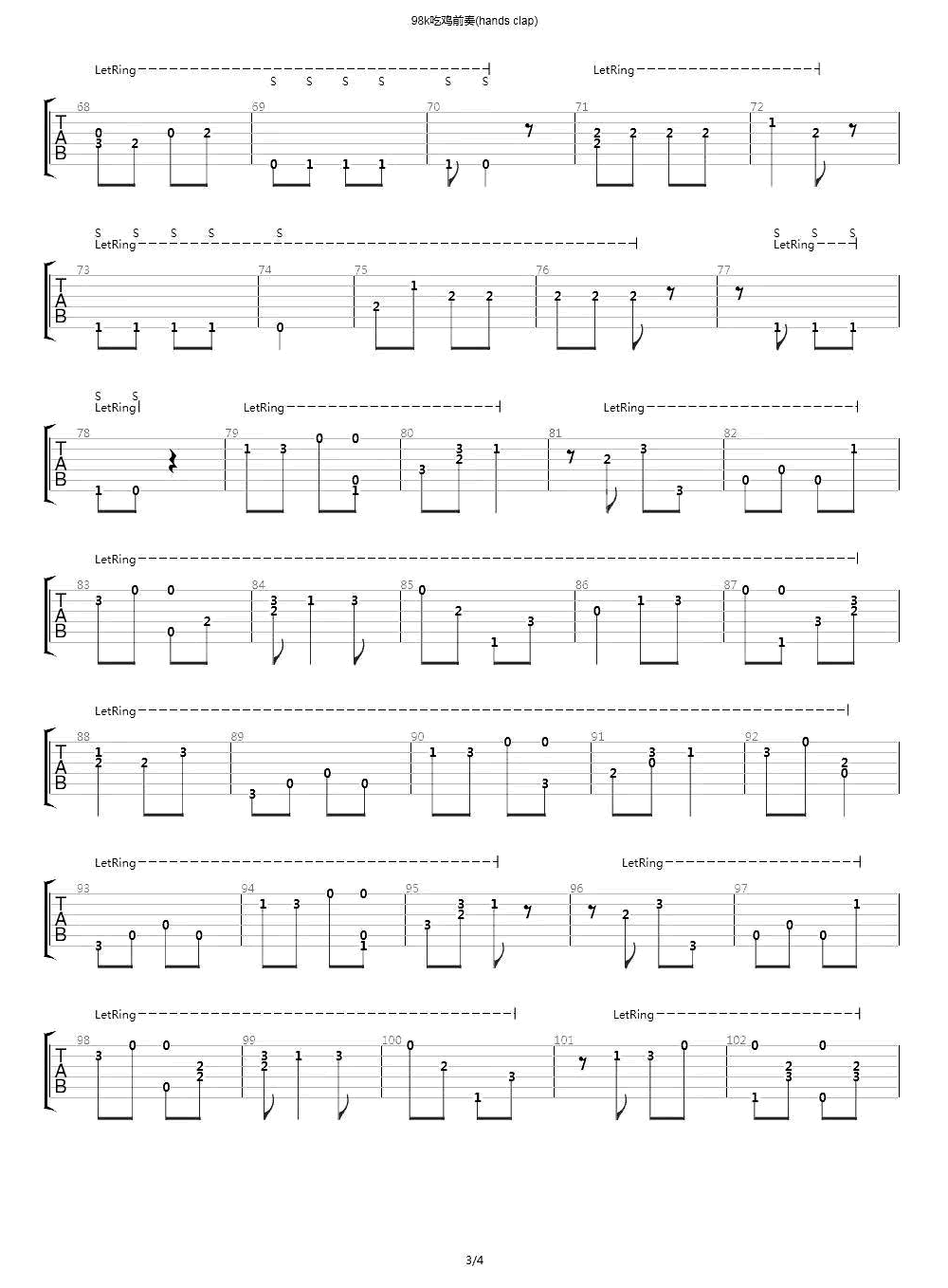 98k吉他谱 - HandClap - 吉他独奏谱