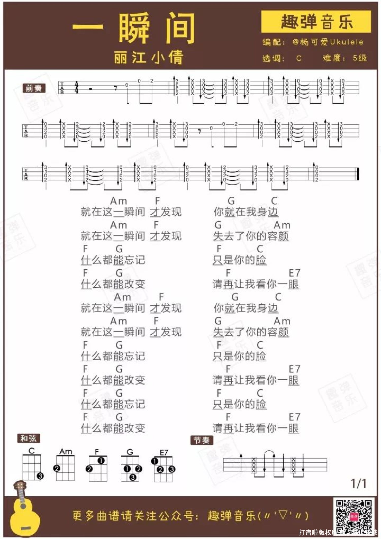 一瞬间尤克里里谱 - 丽江小倩