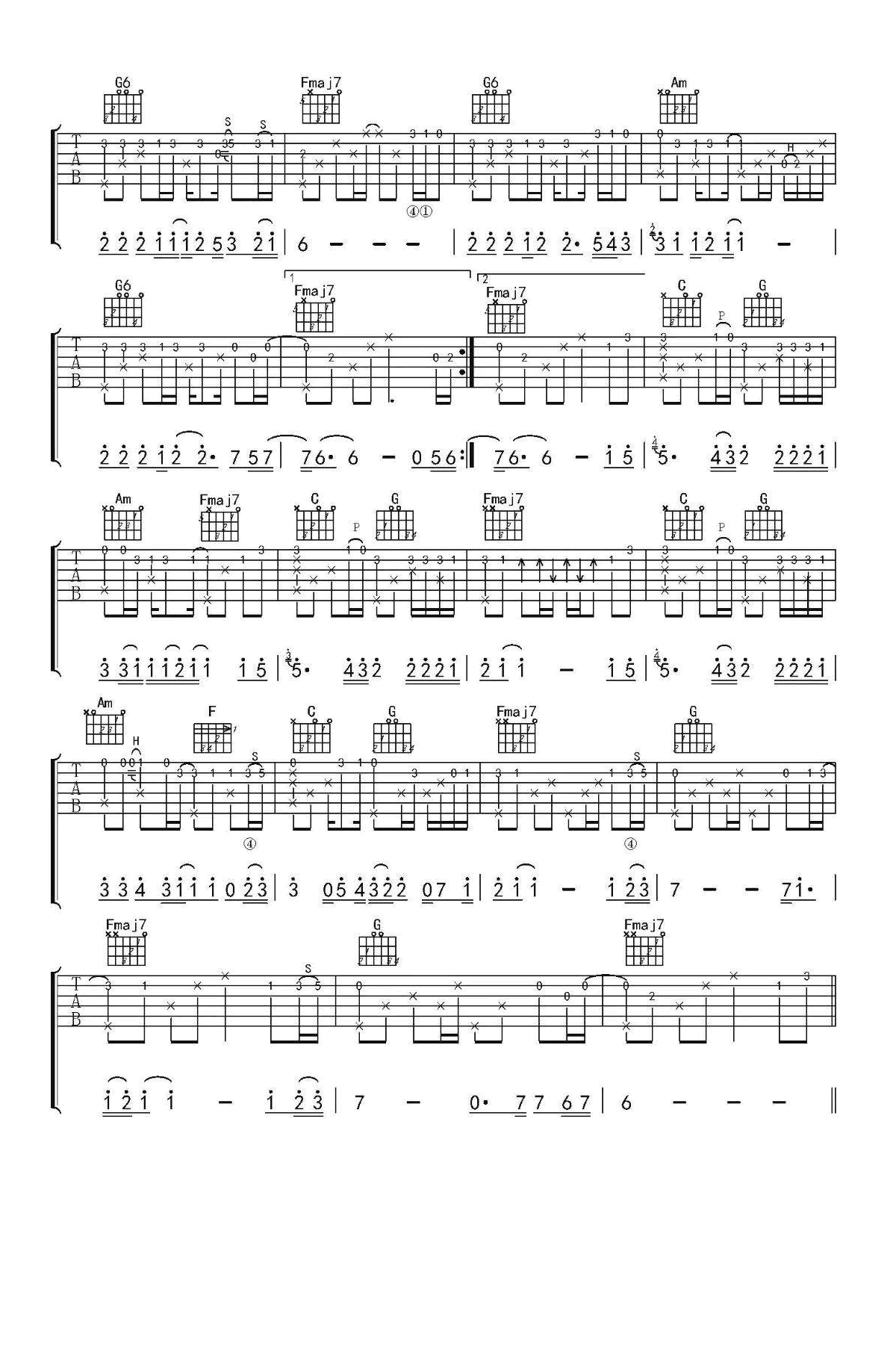 故乡吉他谱 - 许巍 - 吉他独奏谱