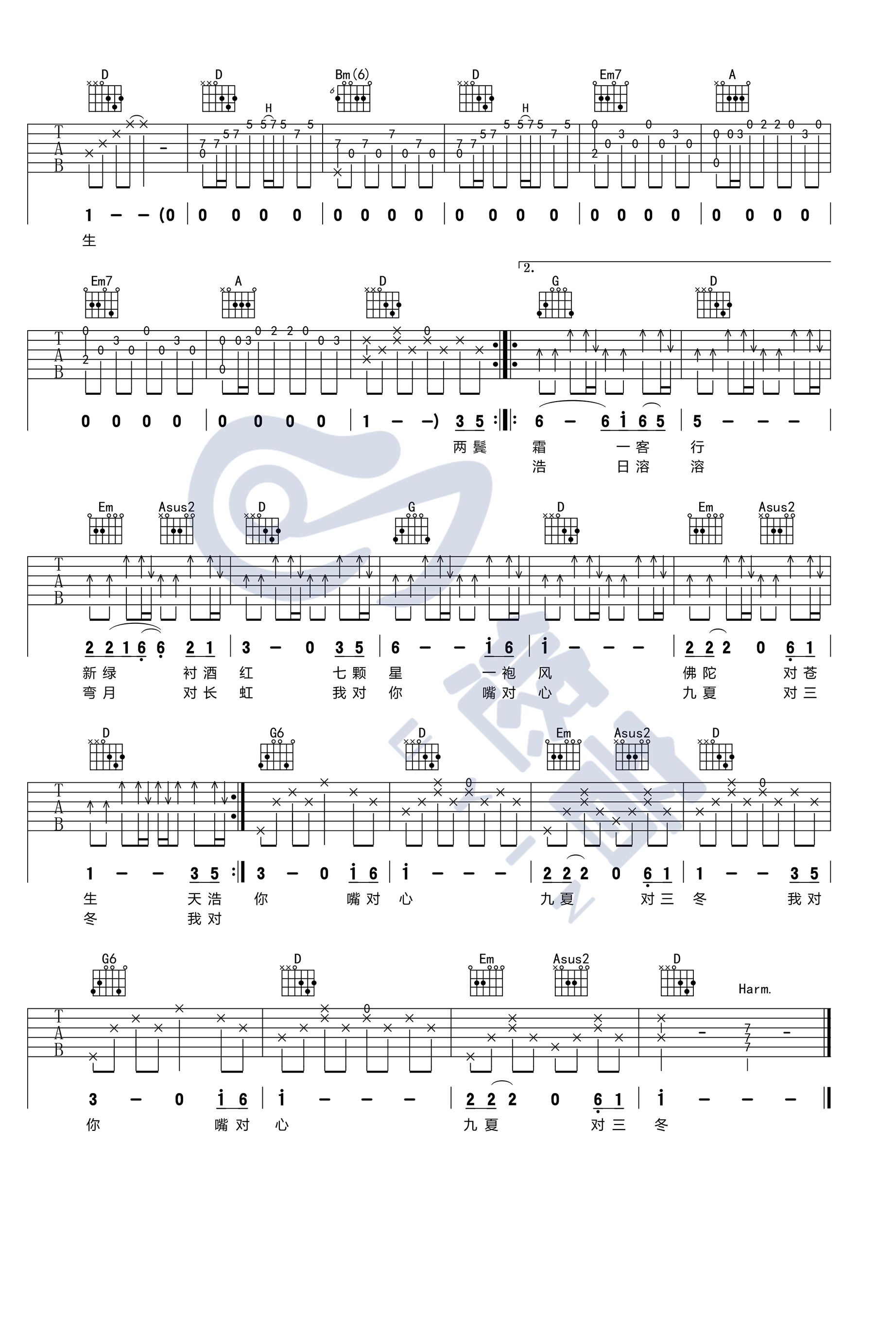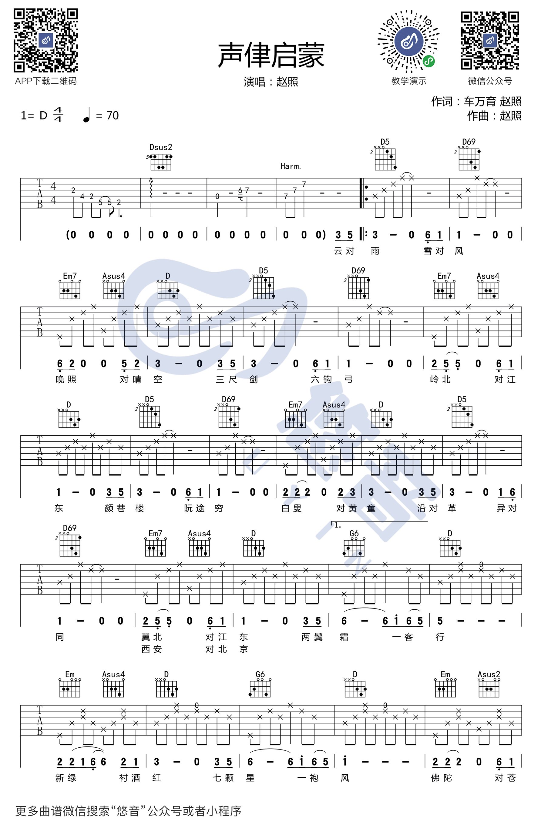 声律启蒙吉他谱 - 赵照 - D调吉他弹唱谱