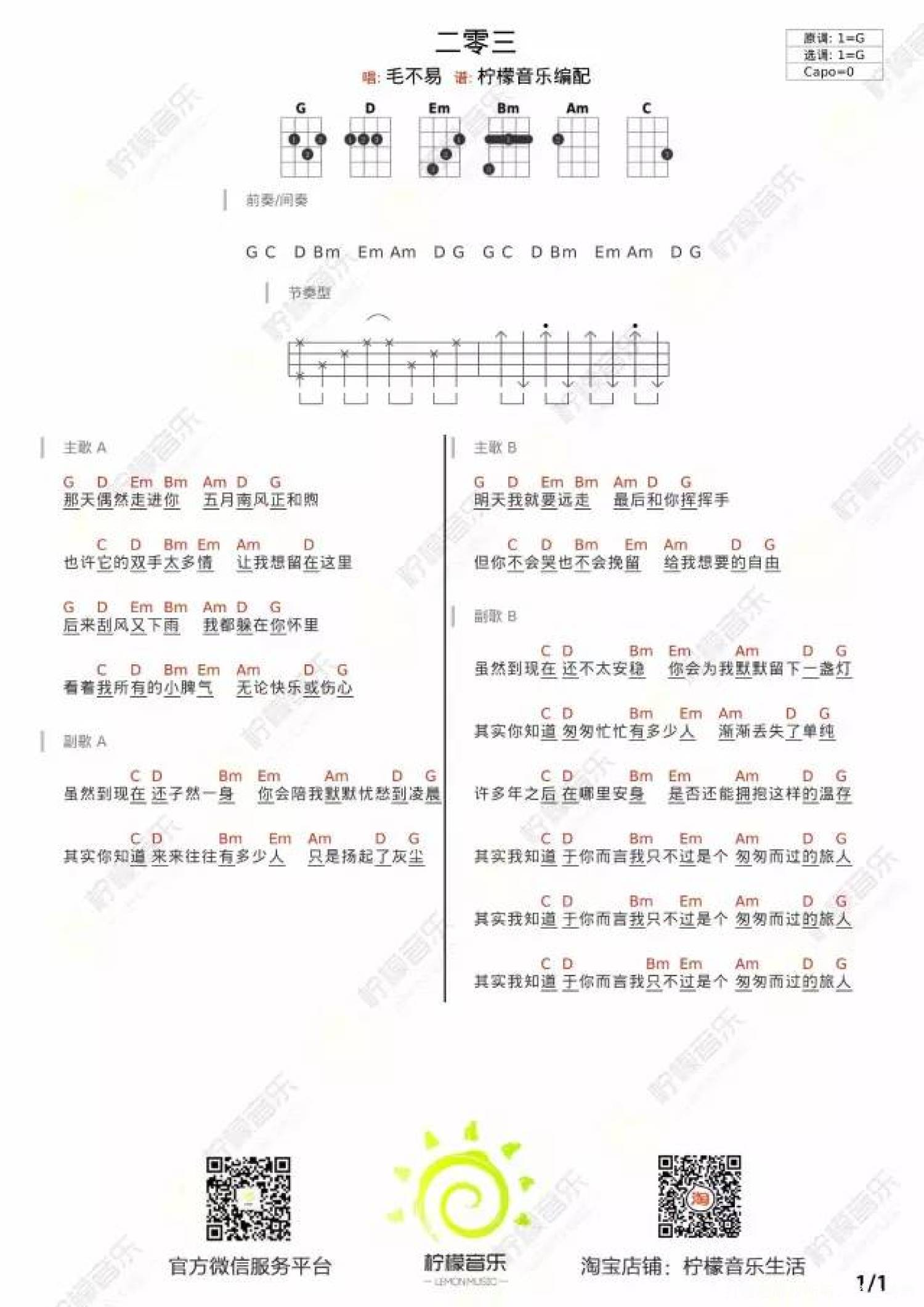 当前位置:琴谱网>尤克里里>二零三