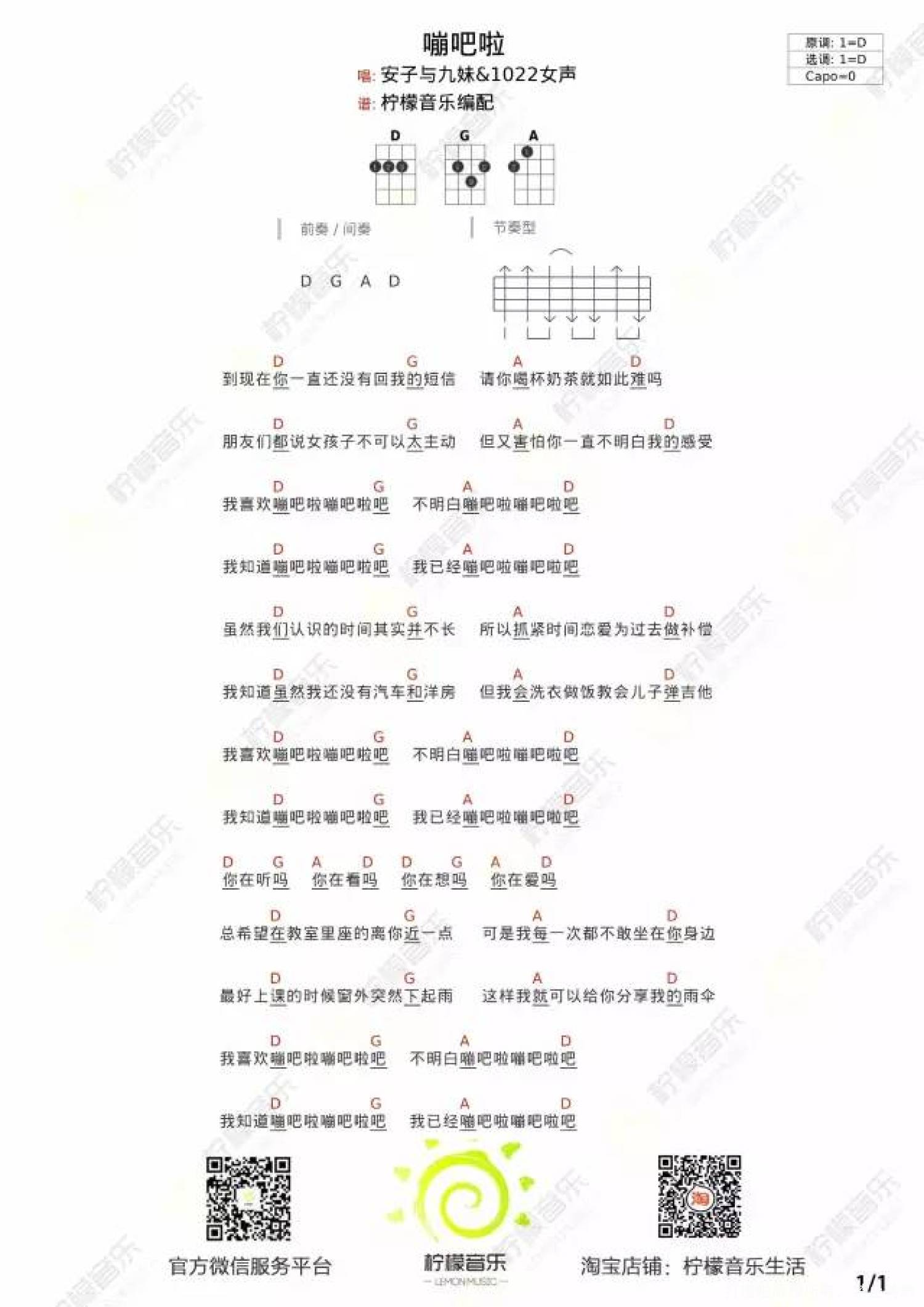曲谱介绍: 《 嘣吧啦 》尤克里里谱