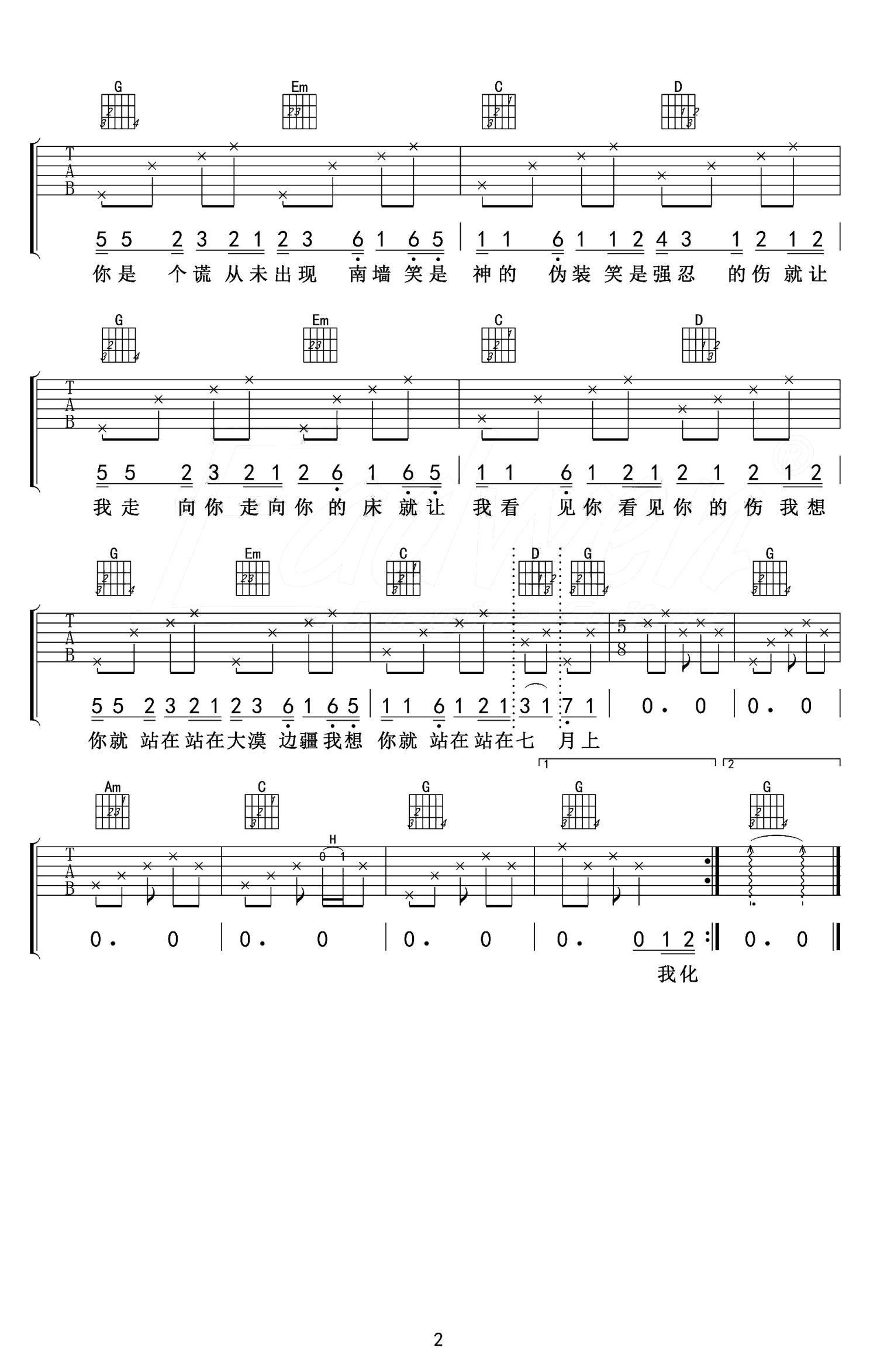 吉他弹唱G调来源:老姚吉他1018 浏览2018-03-19 13:34发布图谱共2页