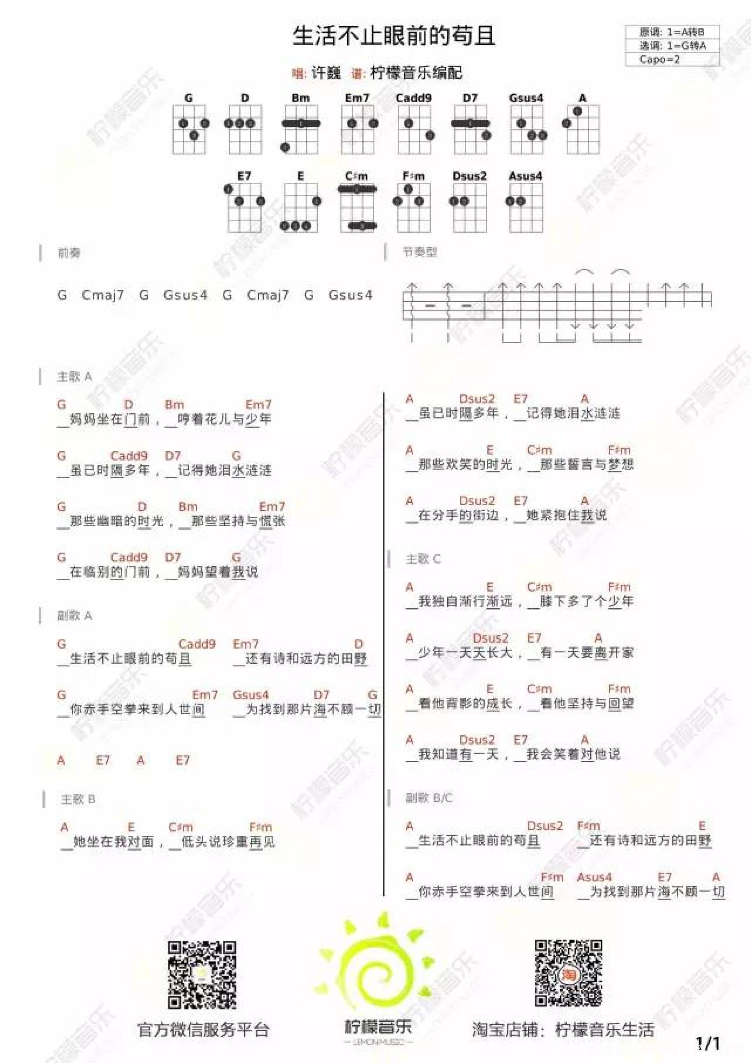 当前位置:琴谱网>尤克里里>生活不止眼前的苟且