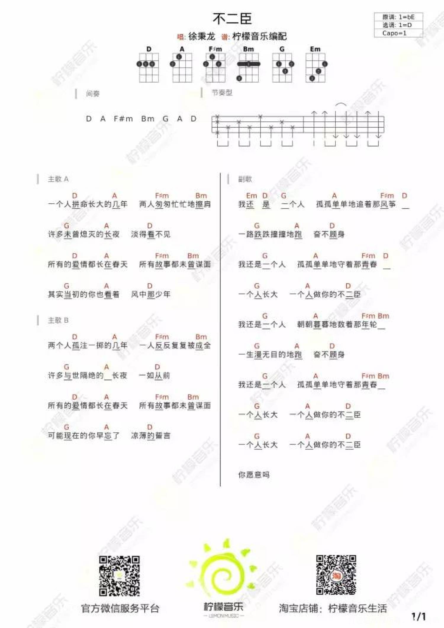 不二臣尤克里里谱 - 徐秉龙