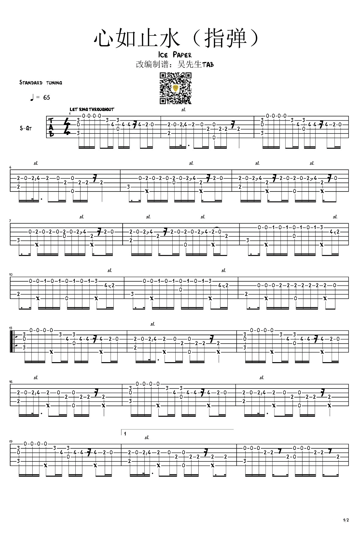 曲谱介绍: 心如止水指弹谱,Ice Paper演唱的一首网络热门歌曲改编,心如止水吉他独奏谱,吴先生编配分享,琴谱网上传更新。