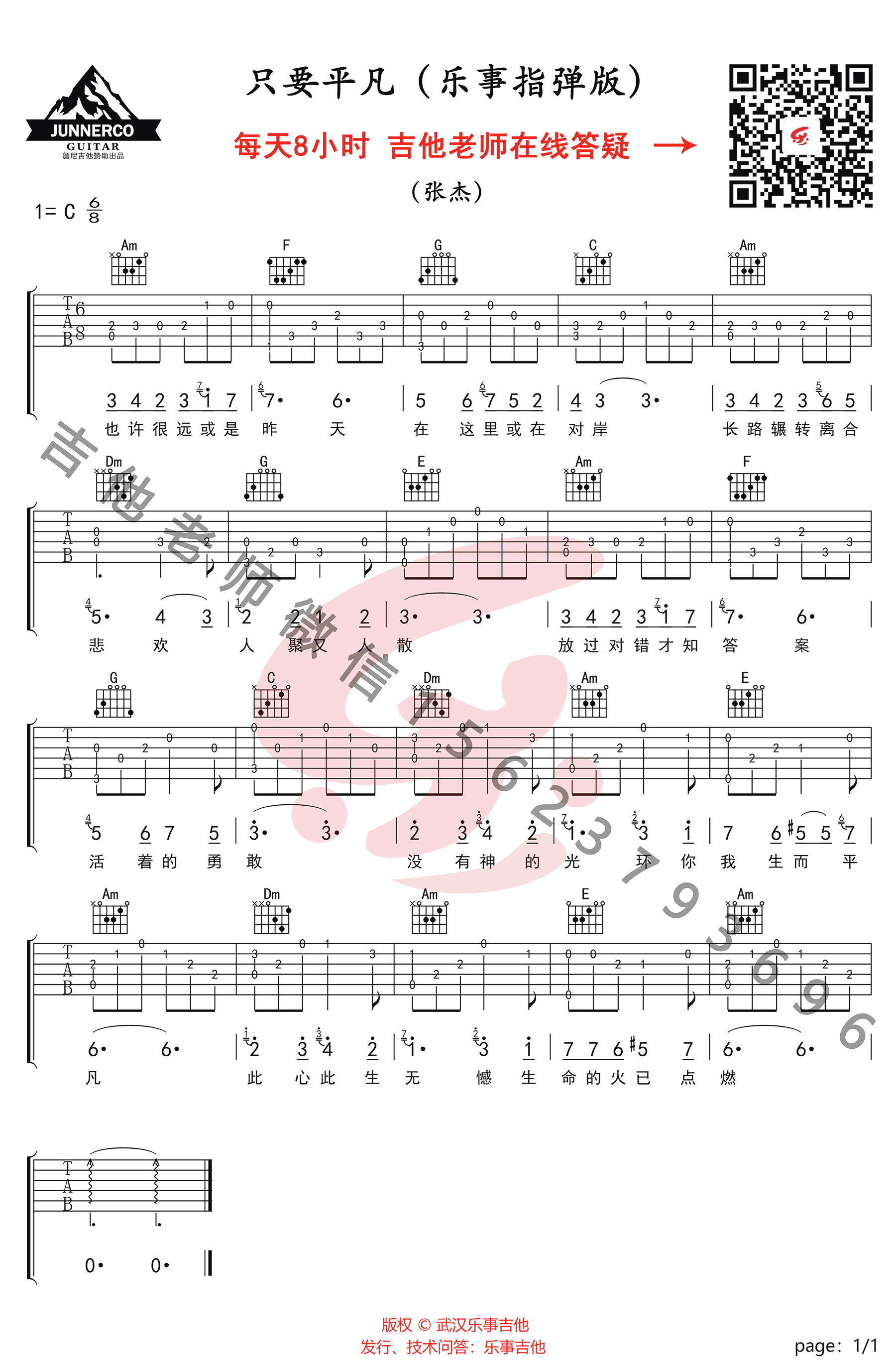 曲谱介绍: 只要平凡吉他谱,张碧晨张杰演唱,电影《我不是药神》主题曲,只要平凡吉他独奏谱,高清图片谱。感谢乐事吉他编配出品,琴谱网整理分享。随谱附上《只要平凡》吉他指弹演示视频。婉转的旋律将人世间的离别苦痛、困顿无奈温柔的低吟浅诉,蕴含着生命的坚韧微光,似一出致敬命运的自白,治愈平凡人生中一切不甘与难平。