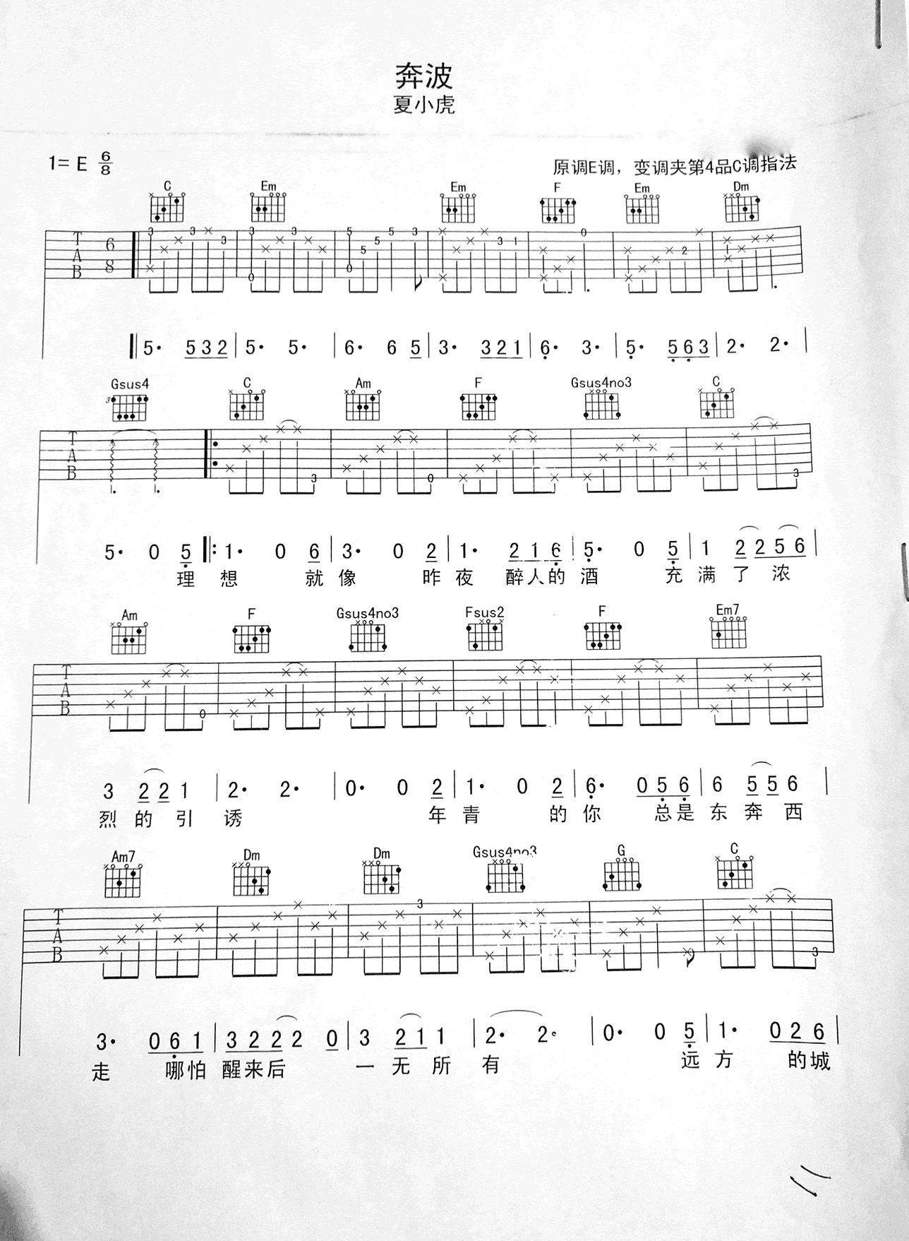 奔波吉他谱 - 夏小虎 - C调吉他弹唱谱