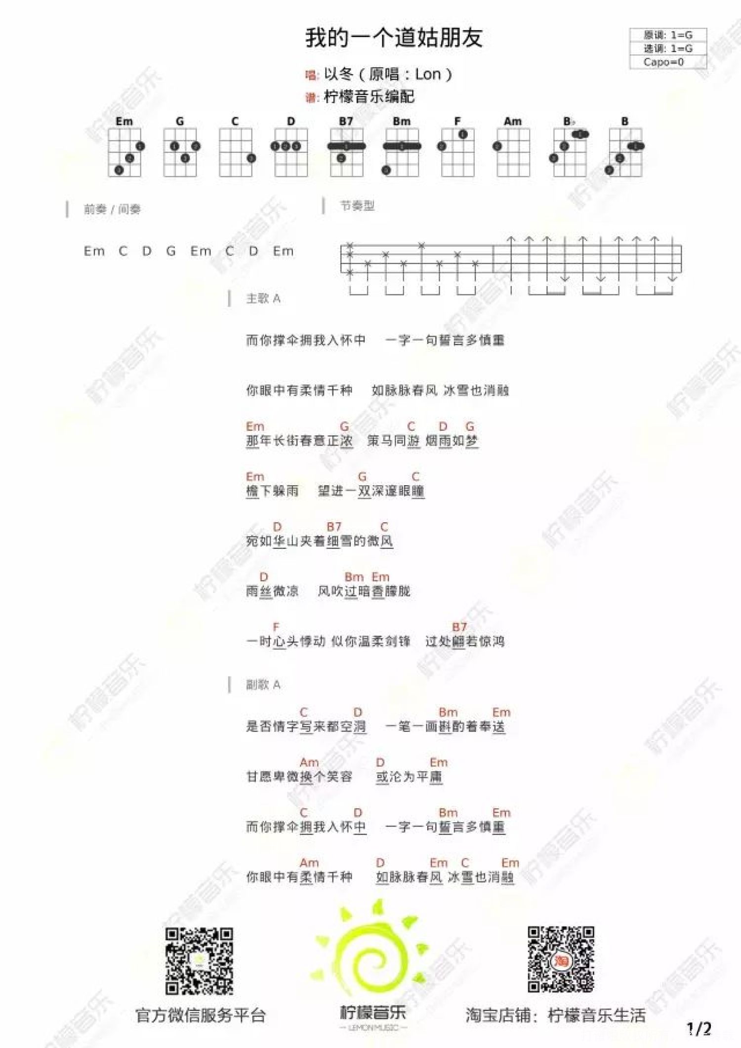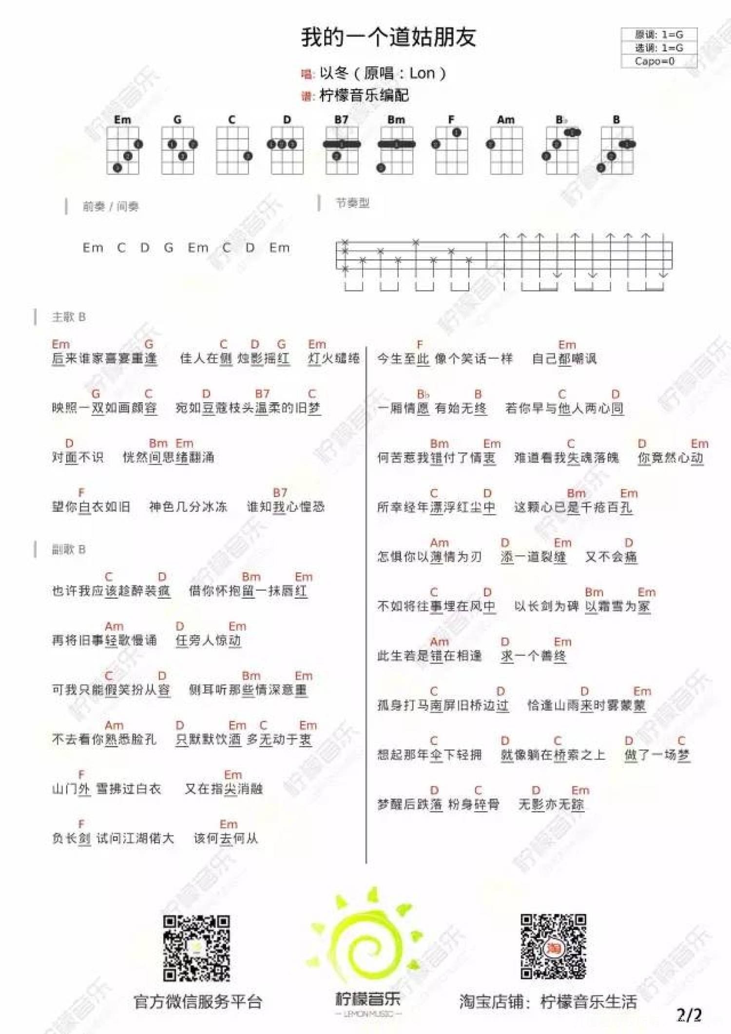 我的一个道姑朋友尤克里里谱 - 以冬