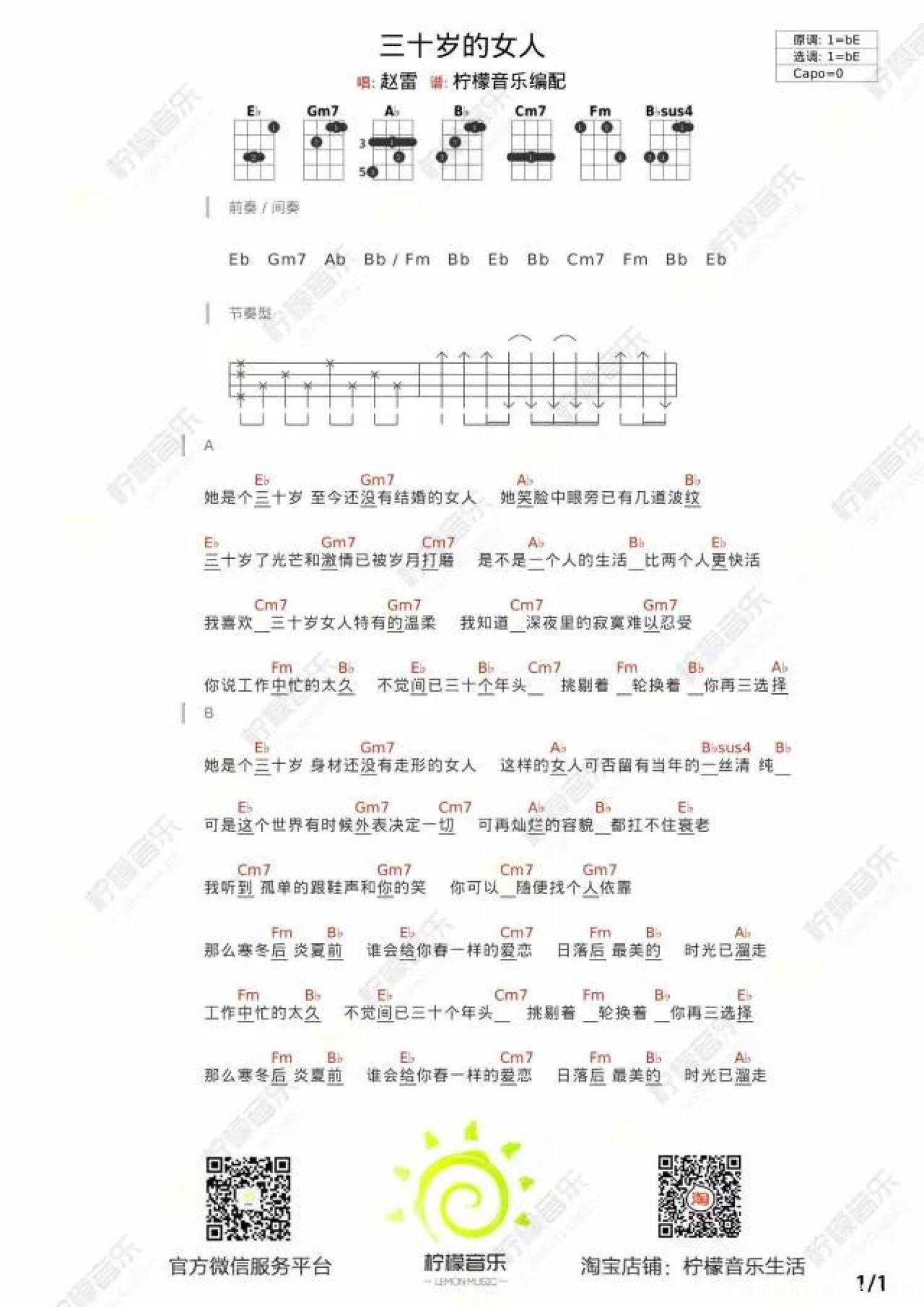 当前位置:琴谱网>尤克里里>三十岁的女人