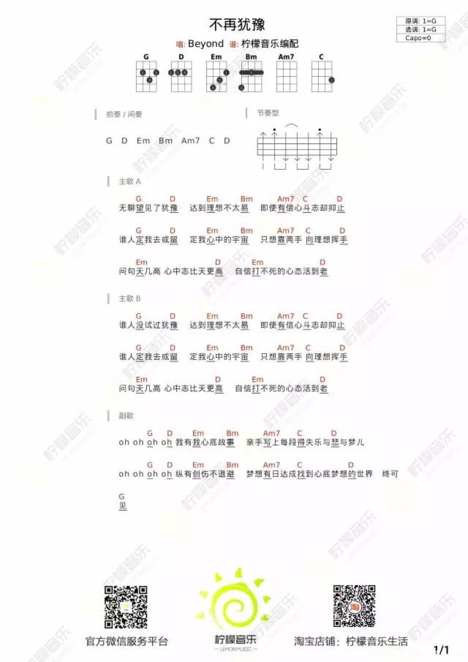 当前位置:琴谱网>尤克里里>不再犹豫