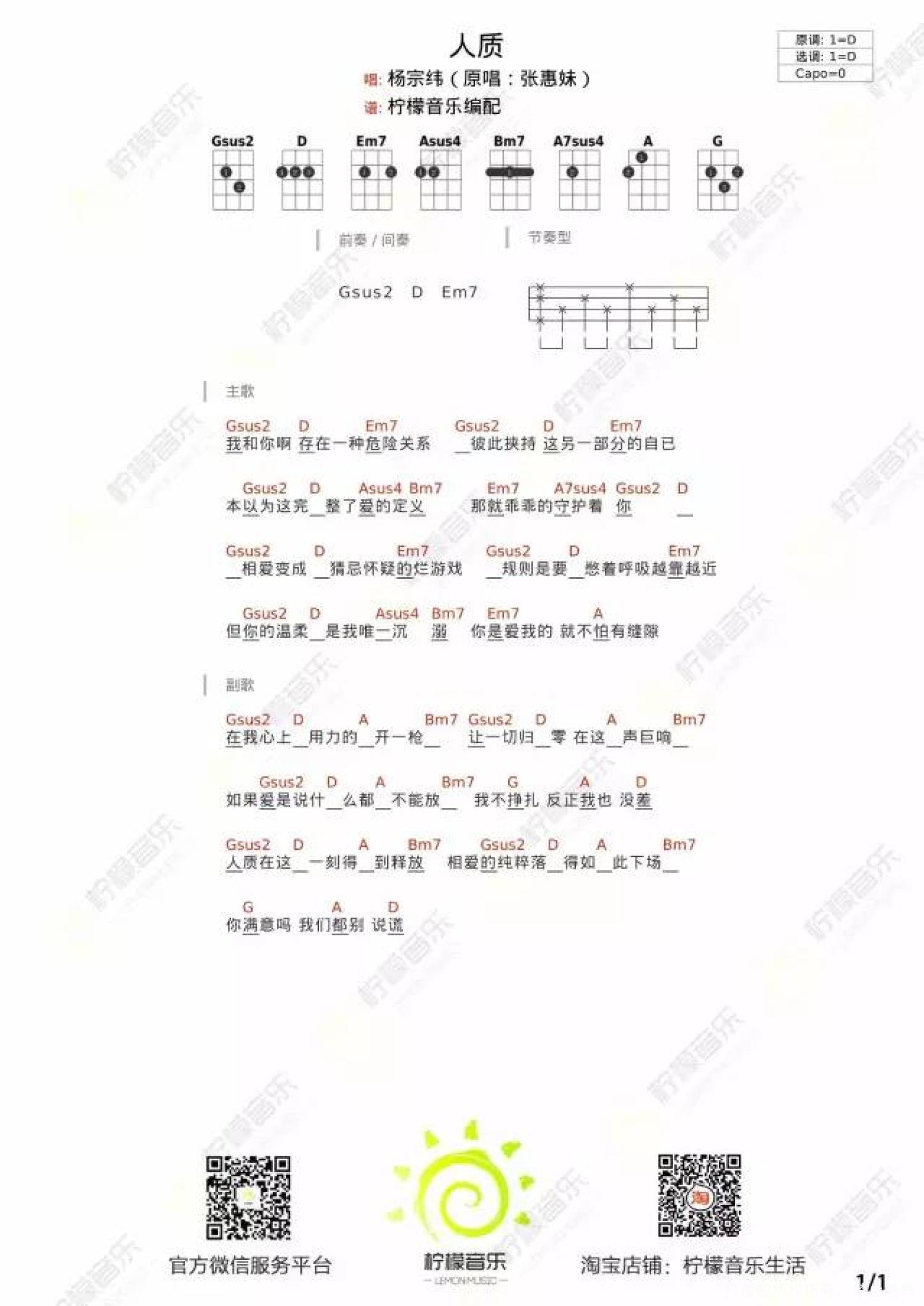人质尤克里里谱 - 杨宗纬