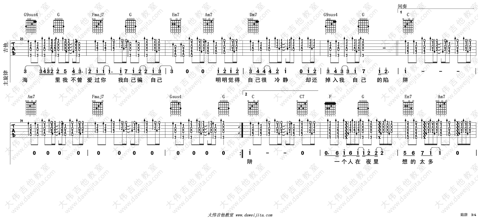 当前位置:琴谱网>吉他弹唱>陷阱