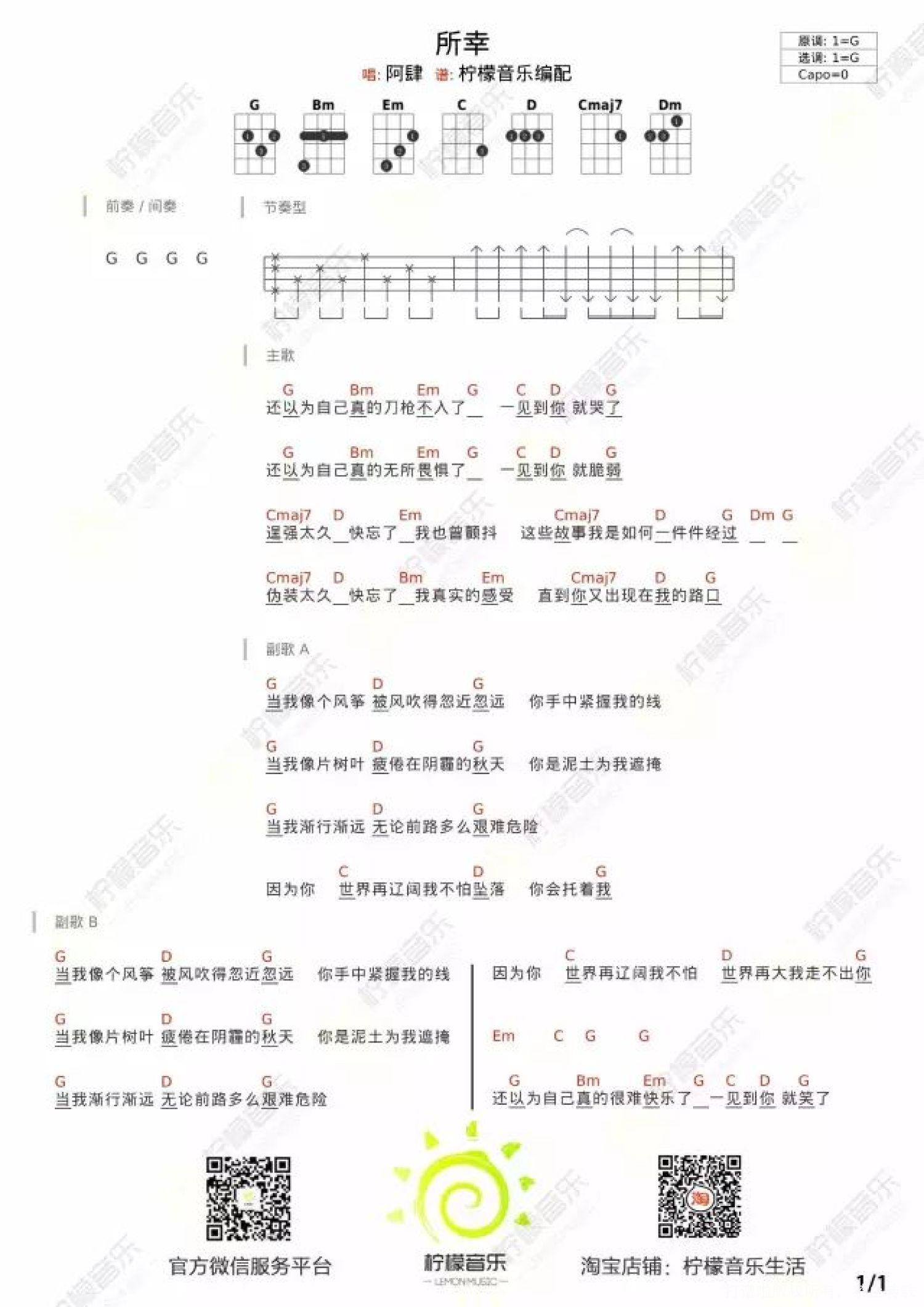 所幸尤克里里谱 - 阿肆