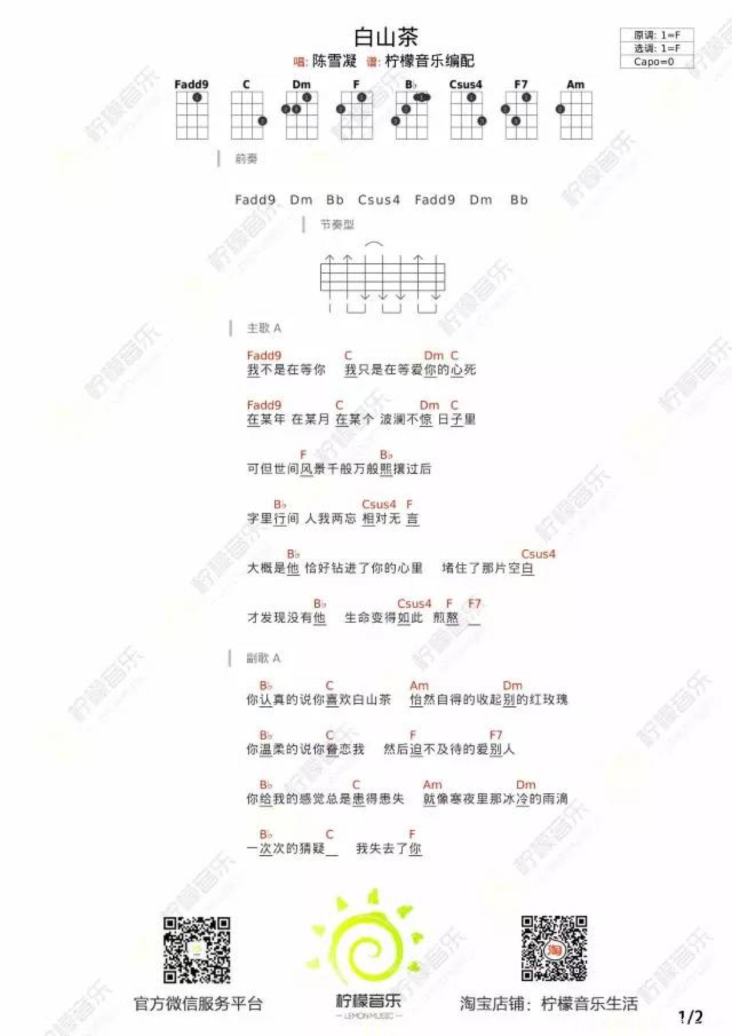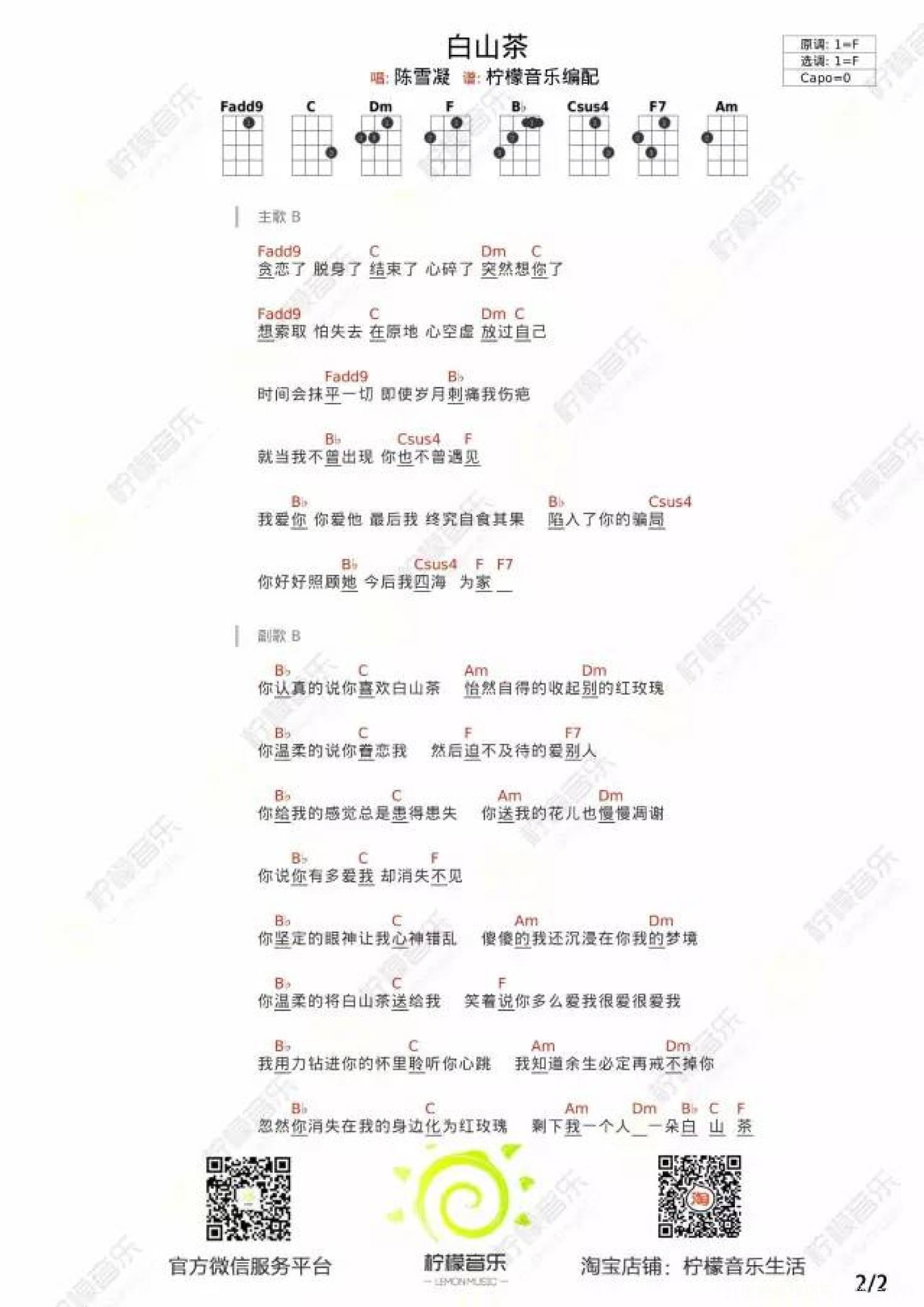 白山茶尤克里里谱 - 汽水妹陈雪凝