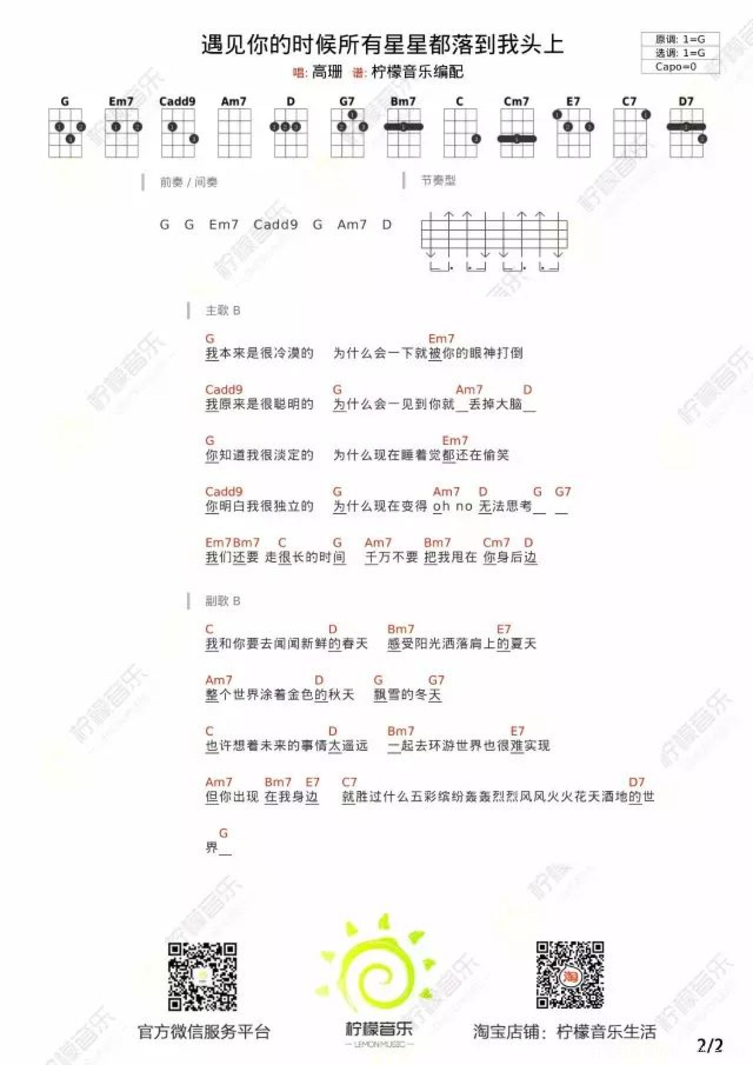 遇见你的时候所有星星都落到我头上尤克里里谱 - 高珊