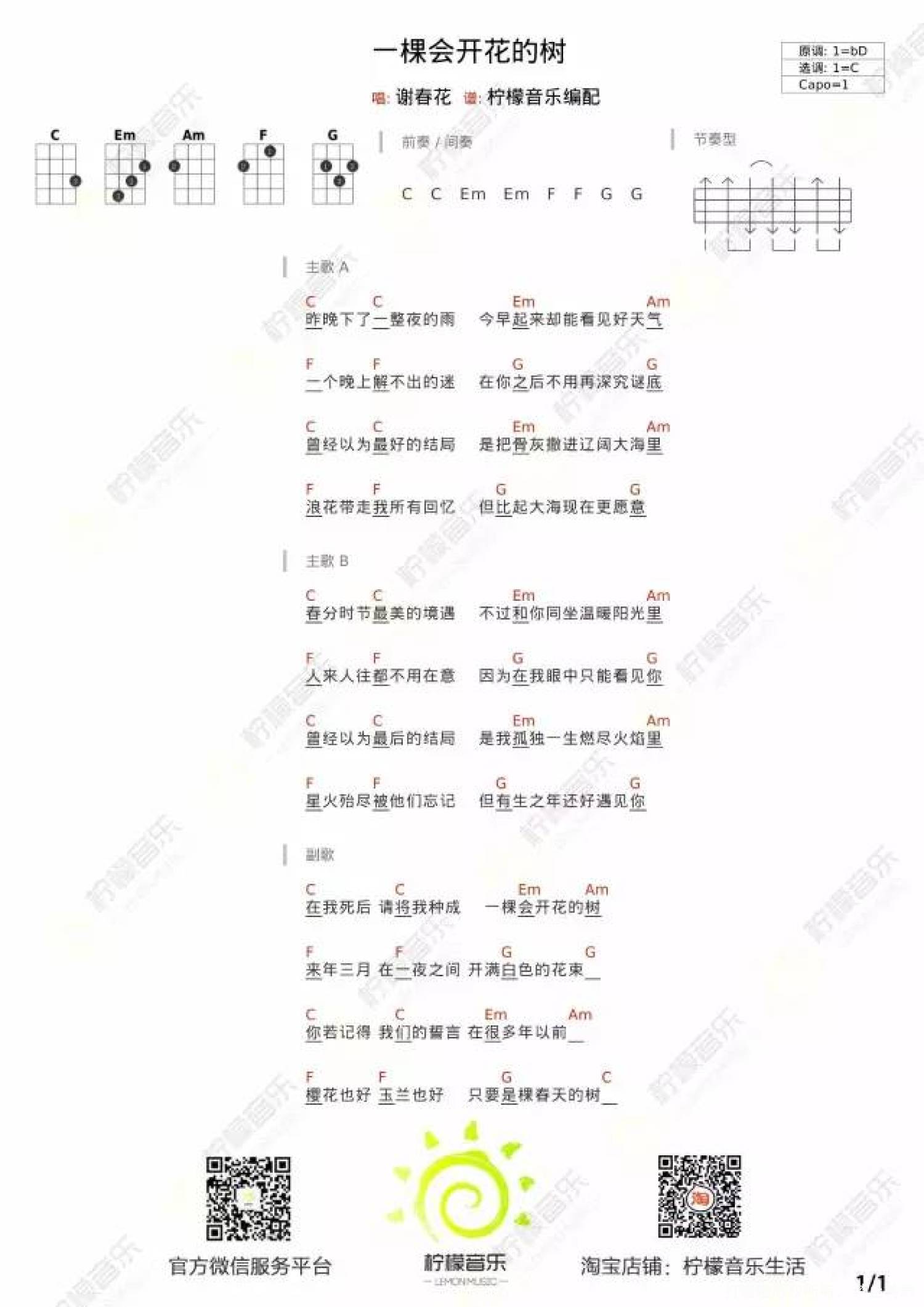 曲谱介绍: 一颗会开花的树 尤克里里谱