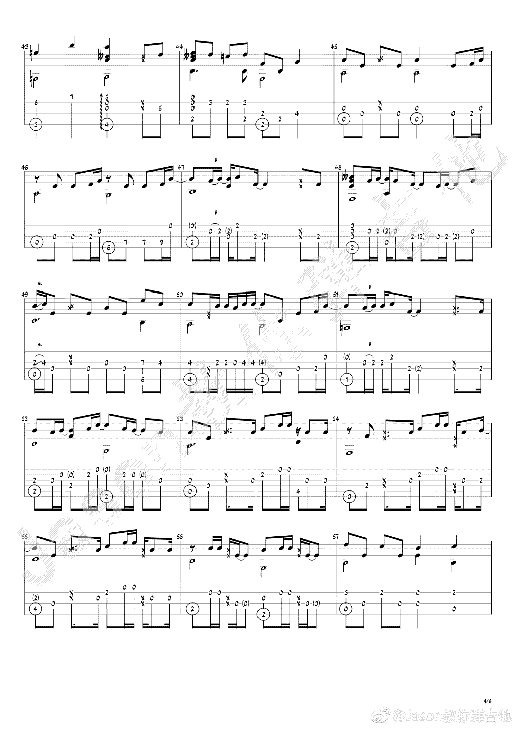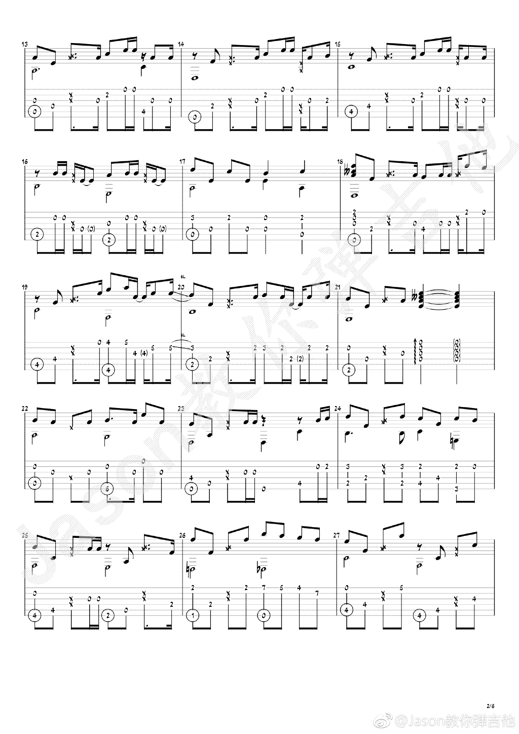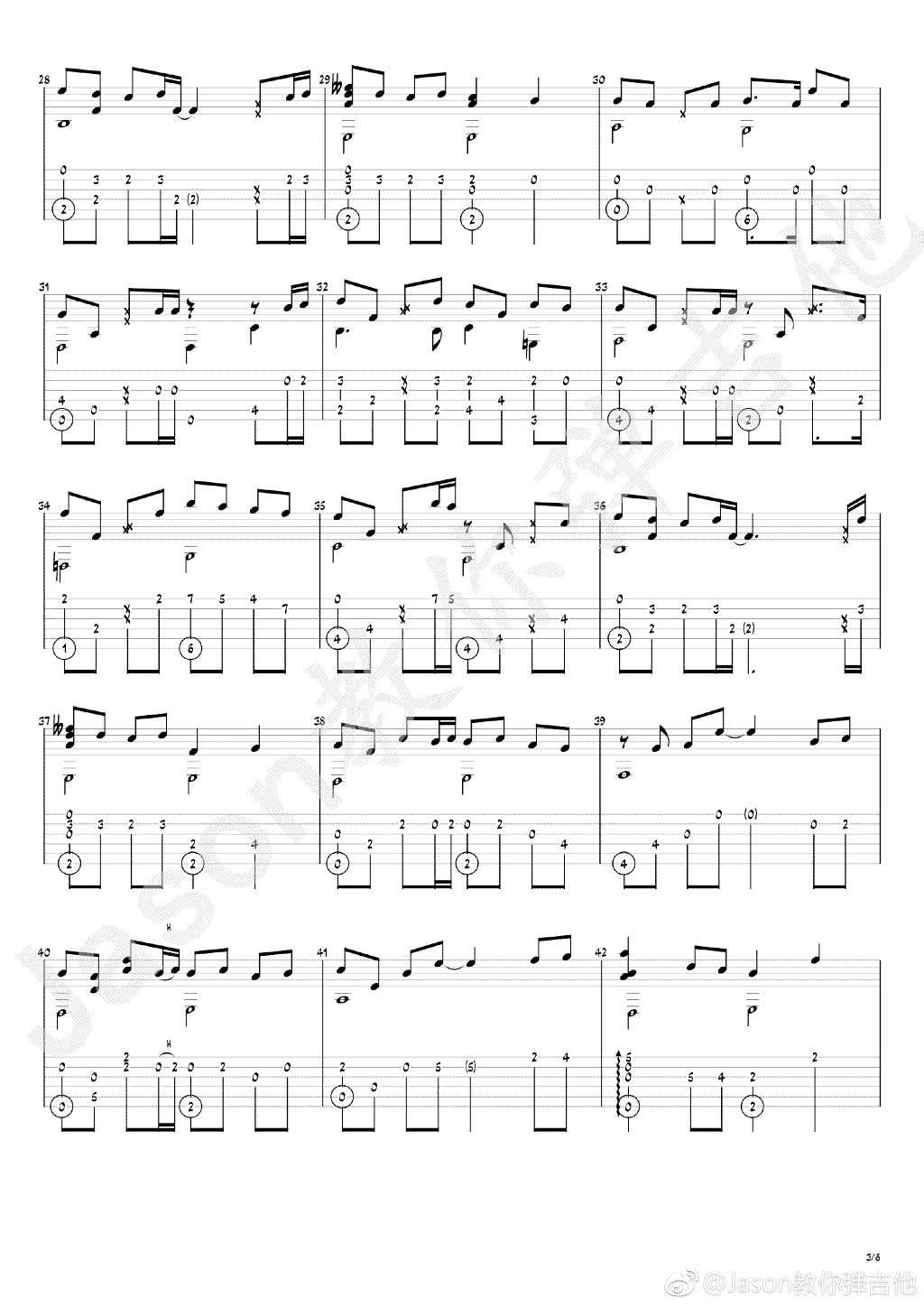 曲谱介绍: 等你下课指弹谱,周杰伦演唱的一首纯爱情歌,等你下课吉他独奏谱,jason编配,琴谱网整理上传。随谱附上《等你下课》吉他指弹演奏视频。本曲旋律节奏型有点难,需要对全音符,二分音符,八分音符,十六分音符,附点等等非常的熟练,才能演奏出来,曲子的和弦走向,有几个非常的特殊地方,根音变化的也是很有实力,可见周杰伦编曲的功力。
