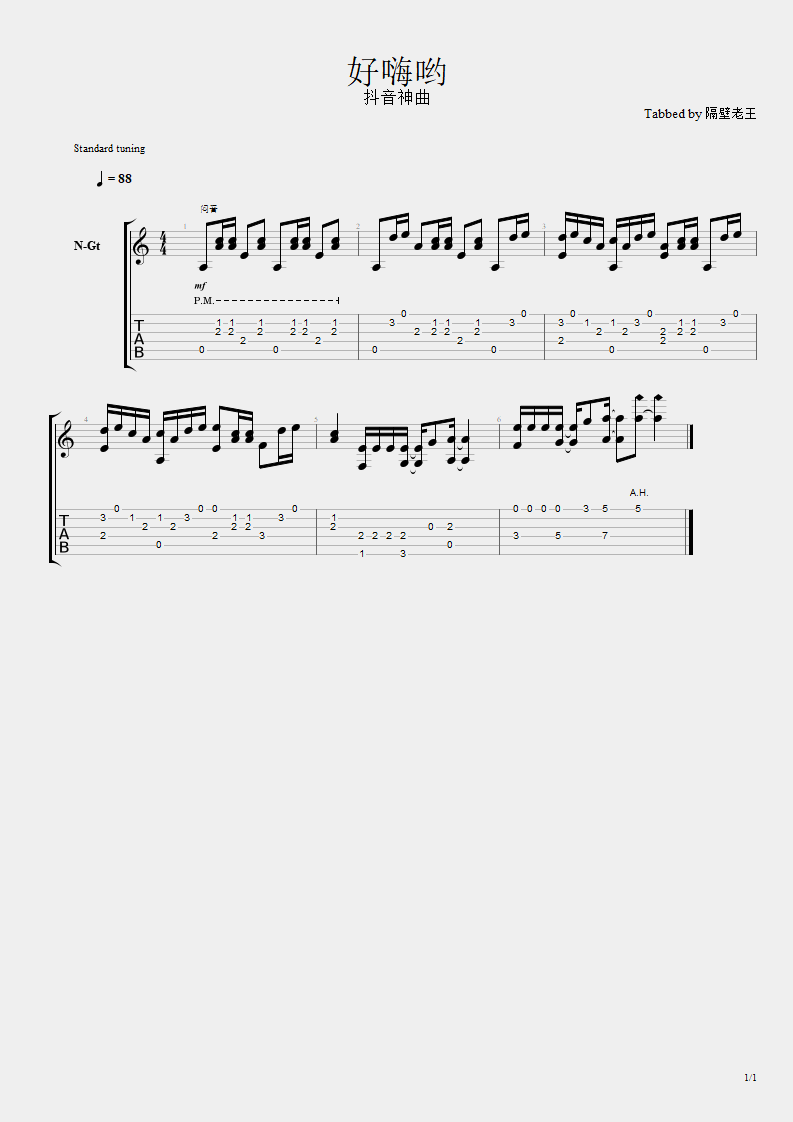曲谱介绍: 好嗨哟吉他谱指弹版,隔壁老王的一首抖音神曲改编,好嗨哟吉他独奏谱,图片谱。苍雪之牙编配,琴谱网上传。随谱附上吉他演奏视频,同学们参考练习。