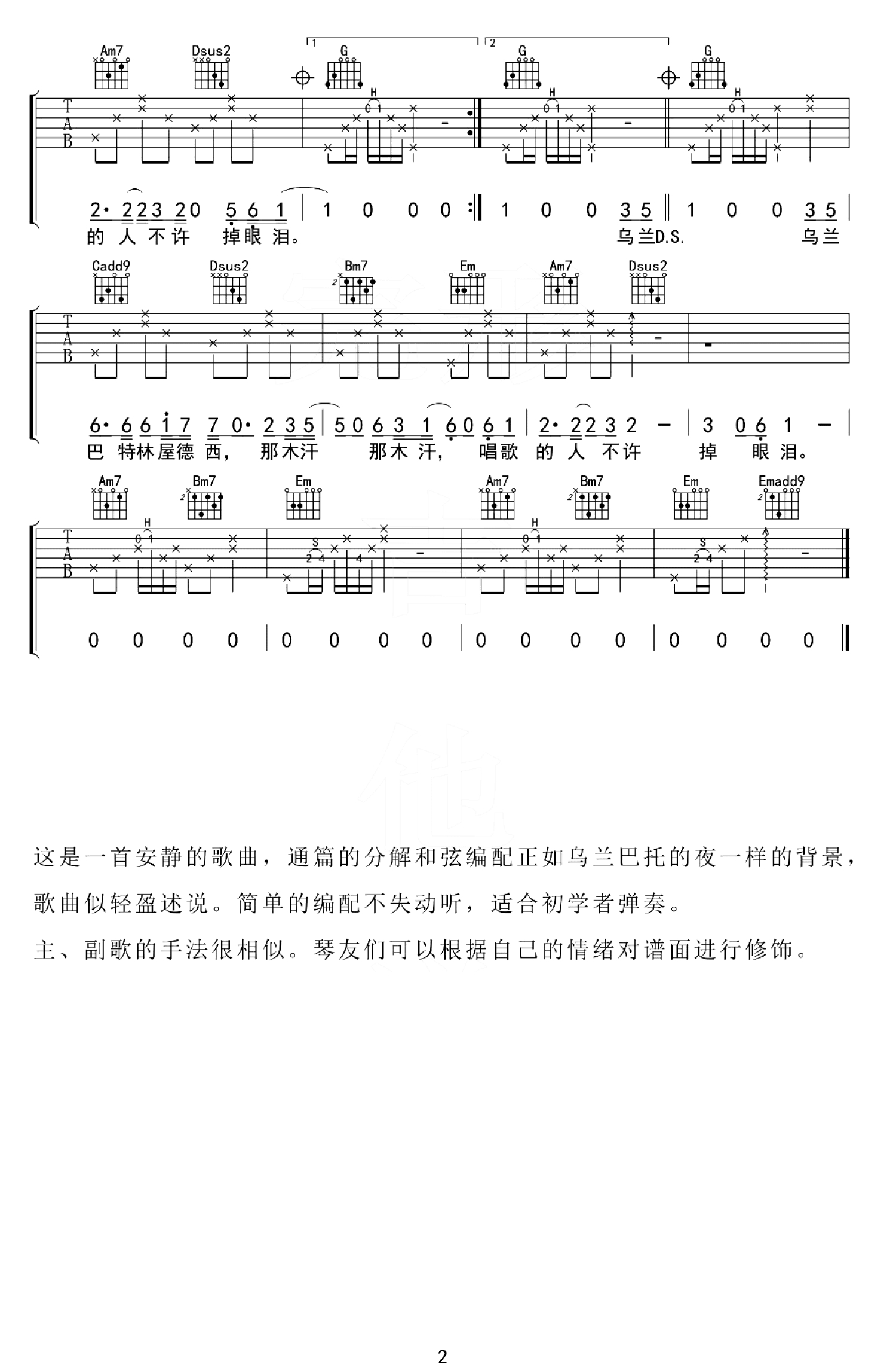 当前位置:琴谱网>吉他弹唱>乌兰巴托的夜