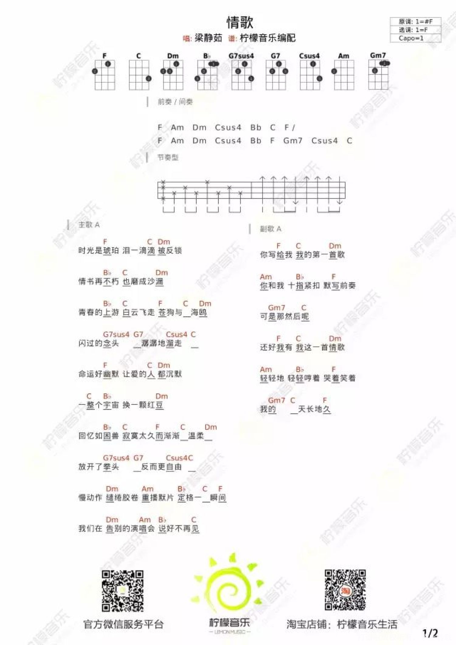 当前位置:琴谱网>尤克里里>情歌