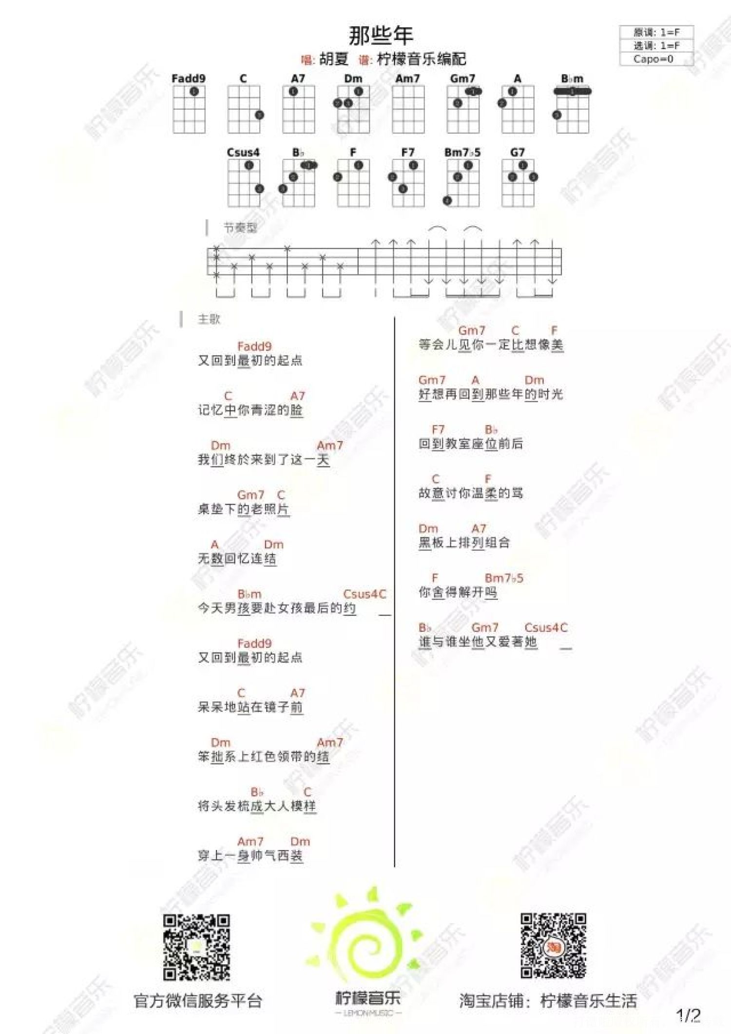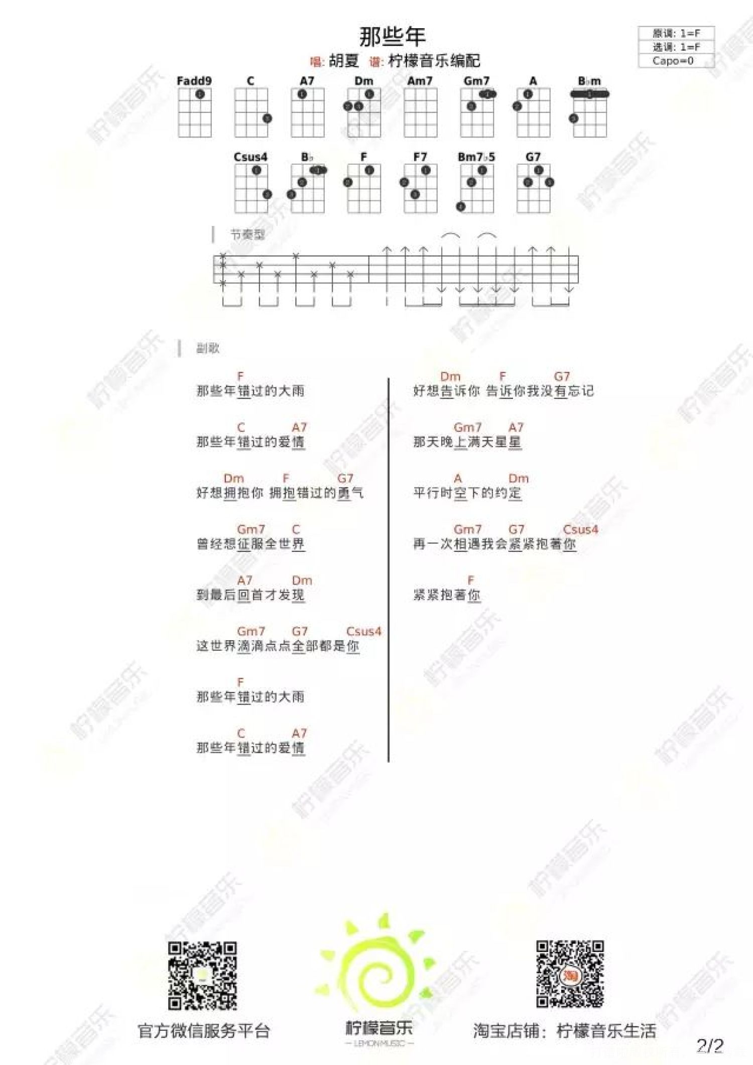 曲谱介绍: 那些年尤克里里谱 尤克里里歌谱(胡夏)柠檬音乐