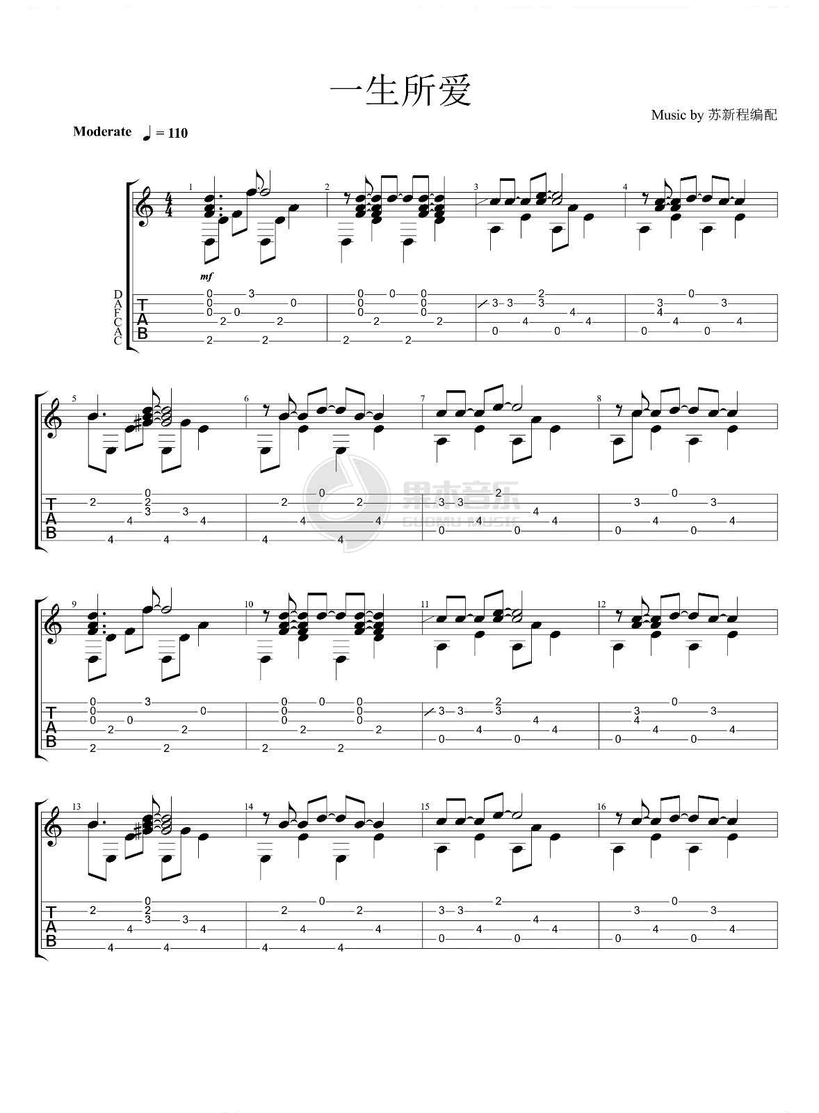 曲谱介绍: 一生所爱指弹谱,周星驰电影《大话西游》主题曲,一生所爱吉他独奏谱,高清图片谱共六张谱例。感谢苏新程指弹编配,并为同学们带来吉他演示视频。