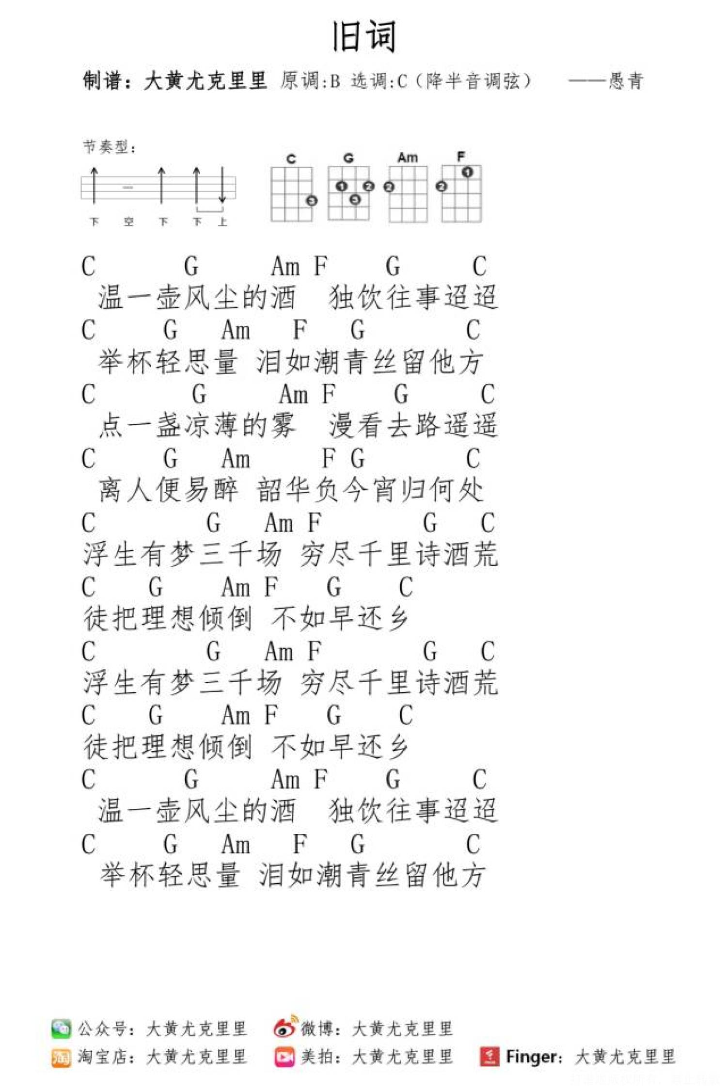 曲谱介绍: 旧词 尤克里里谱