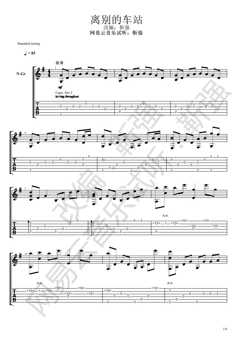 曲谱介绍: 离别的车站指弹谱,琼瑶电视剧《情深深雨蒙蒙》插曲,赵薇演唱的一首经典代表歌曲,离别的车站吉他独奏谱,完整版编配,共六张图片谱。感谢靳强吉他指弹改编,网易云音乐试听,琴谱网整理上传。