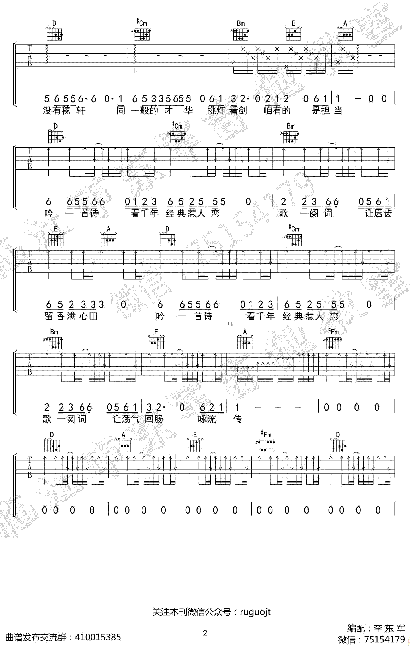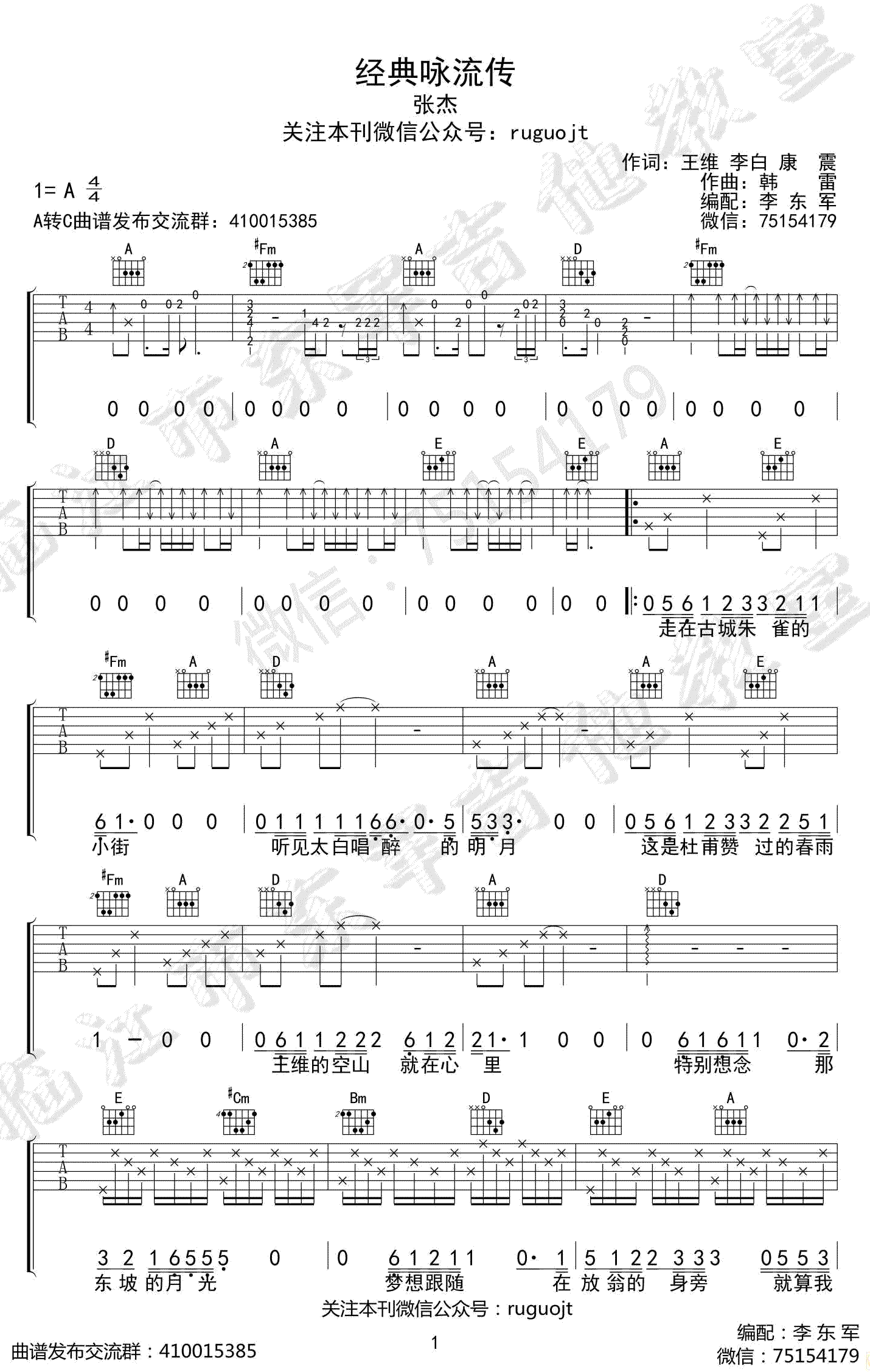 经典咏流传吉他谱 - 张杰 - 吉他弹唱谱