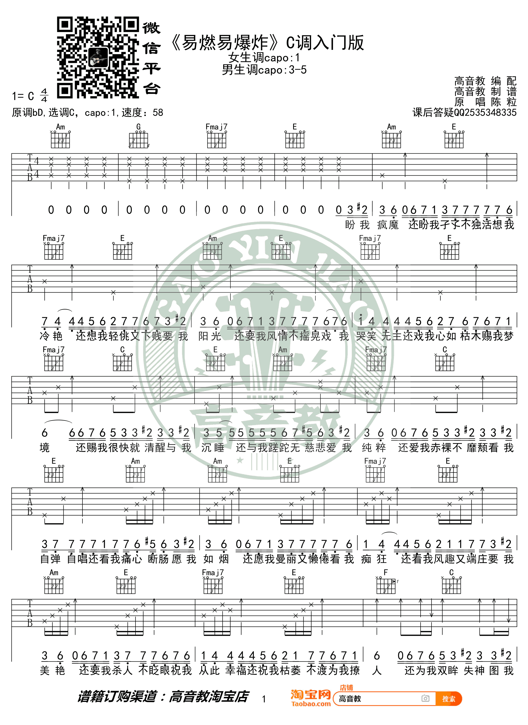 当前位置:琴谱网>吉他弹唱>易燃易爆炸
