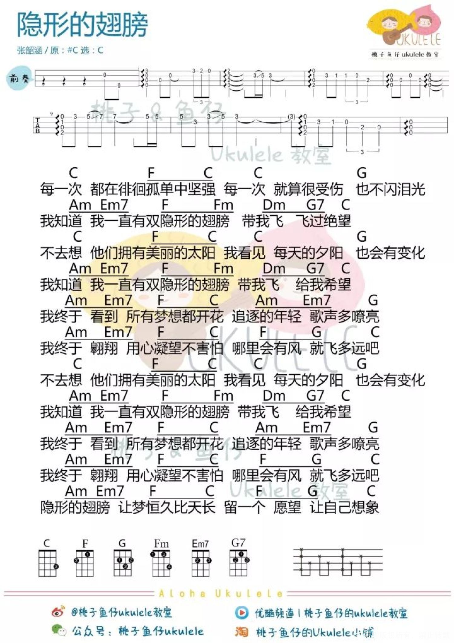 隐形的翅膀尤克里里谱