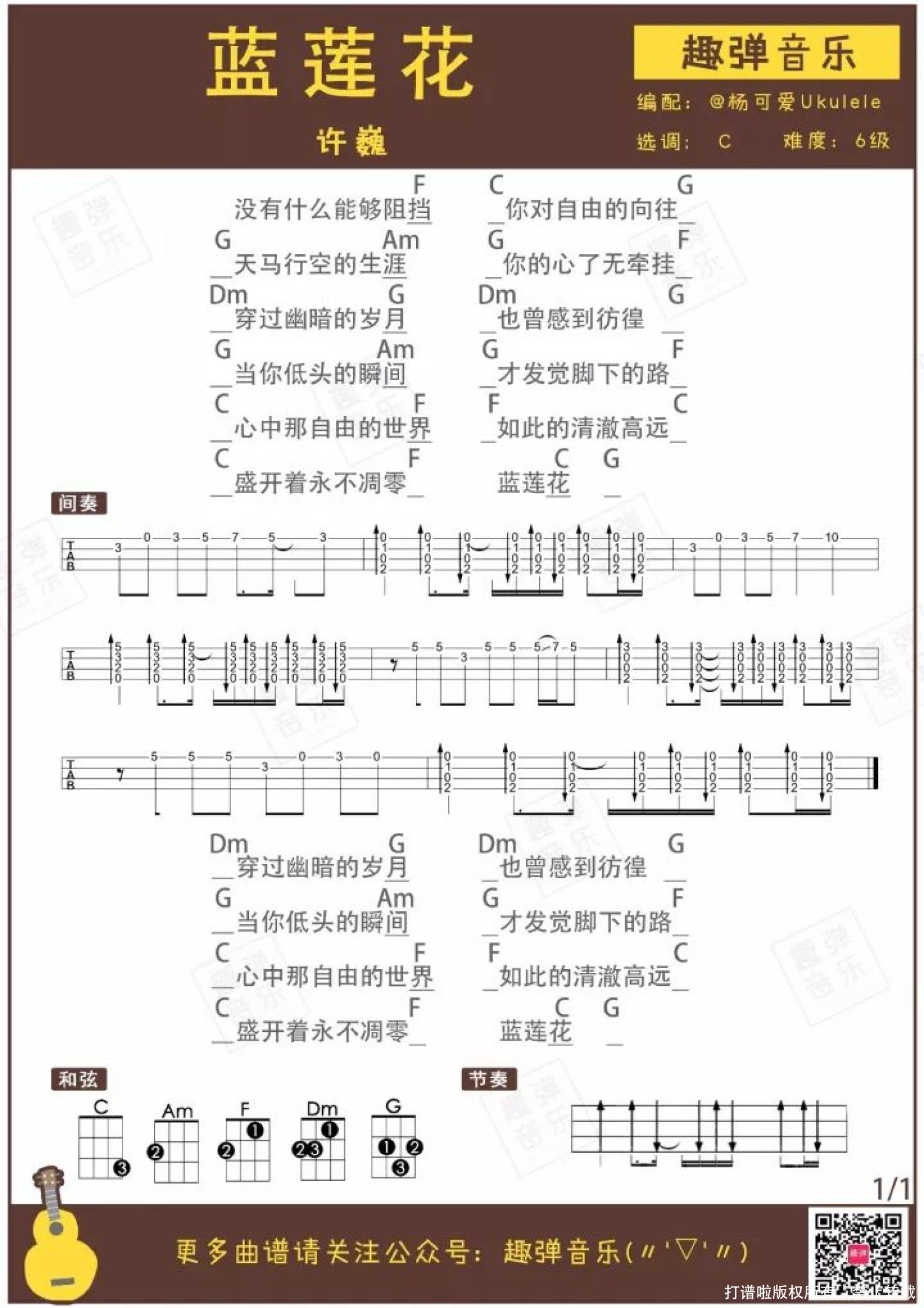 曲谱介绍: 我知道你们在等我~我是你们心心念念的心愿制谱机~ 今天又是两首有些反差的歌曲,一首是节奏登登登的沧桑男声,一首是安静美好的软妹声。 快来收谱咯~♪ 蓝莲花 ● 由许巍作词作曲并演唱,选自第三张专辑《时光·漫步》。 ● 创作初衷是许巍写给唐朝著名僧人玄奘法师的,整首歌曲有着浓厚的禅学味道。 许巍是一位低调到不行的歌手。但是好歌手并不会因为低调而被埋没。 如果当你告诉一个人你喜欢许巍,而对方也惊喜地表示他也是,那么你们一定能成为好朋友。 《蓝莲花》已经是15年前的歌了。这首歌没有特别激烈的节奏,也没有跌宕的旋律,但却能给人震撼心灵的力量。 没什么能阻挡你对自由的向往,跟随着许巍登登登登的摇滚节奏,出发吧~   蓝莲花尤克里里谱