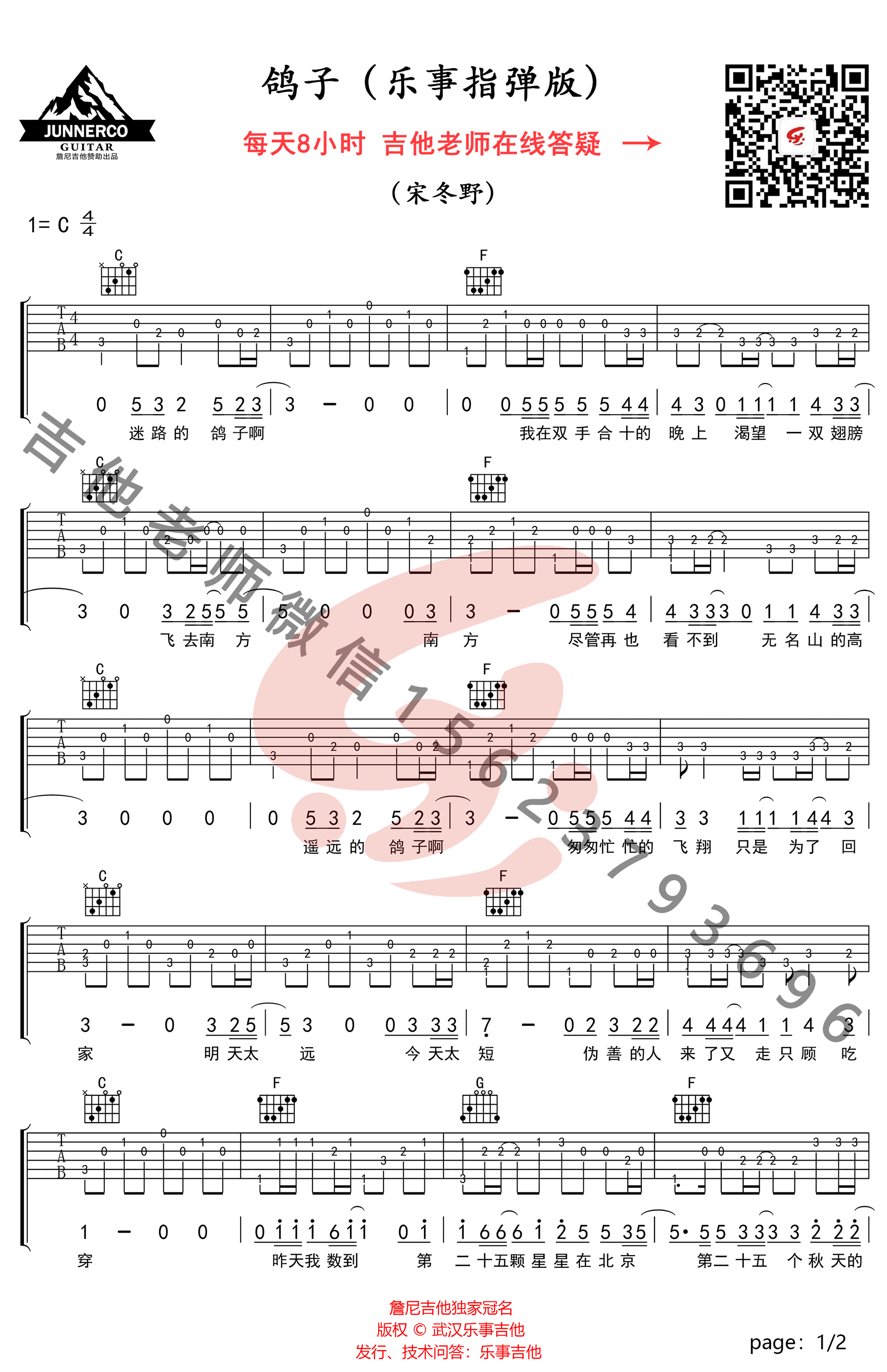 曲谱介绍: 鸽子指弹谱,宋冬野的代表民谣歌曲,鸽子吉他独奏谱,C调新手简单版编配,乐事吉他出品,随谱附上《鸽子》指弹吉他教学视频,琴谱网上传分享。