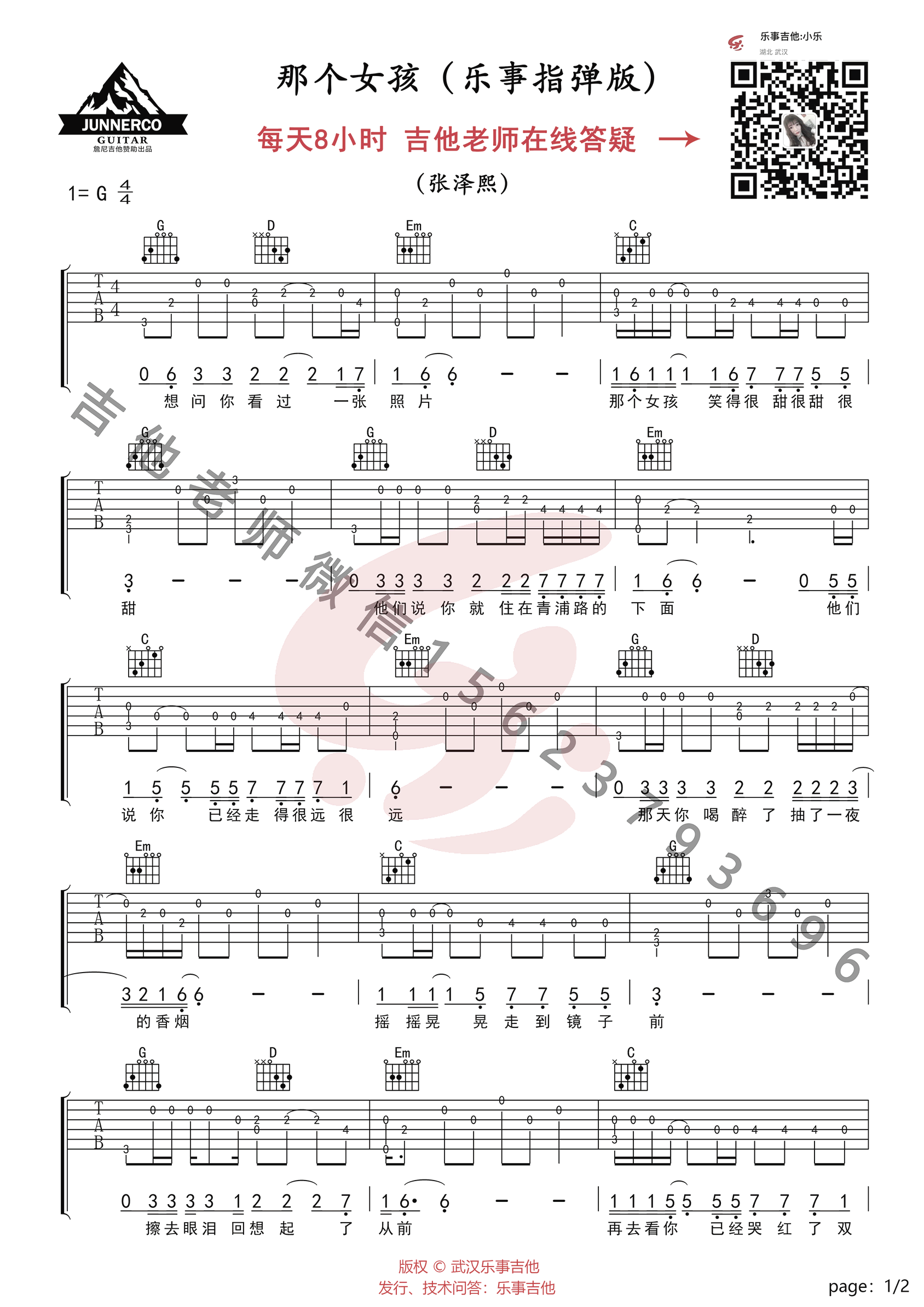 曲谱介绍: 那个女孩指弹谱,张泽熙演唱的一首网络热门歌曲改编,那个女孩吉他独奏谱,G调和弦,两张高清图片谱。乐事吉他编配制谱,并提供配套指弹教学视频,琴谱网上传。