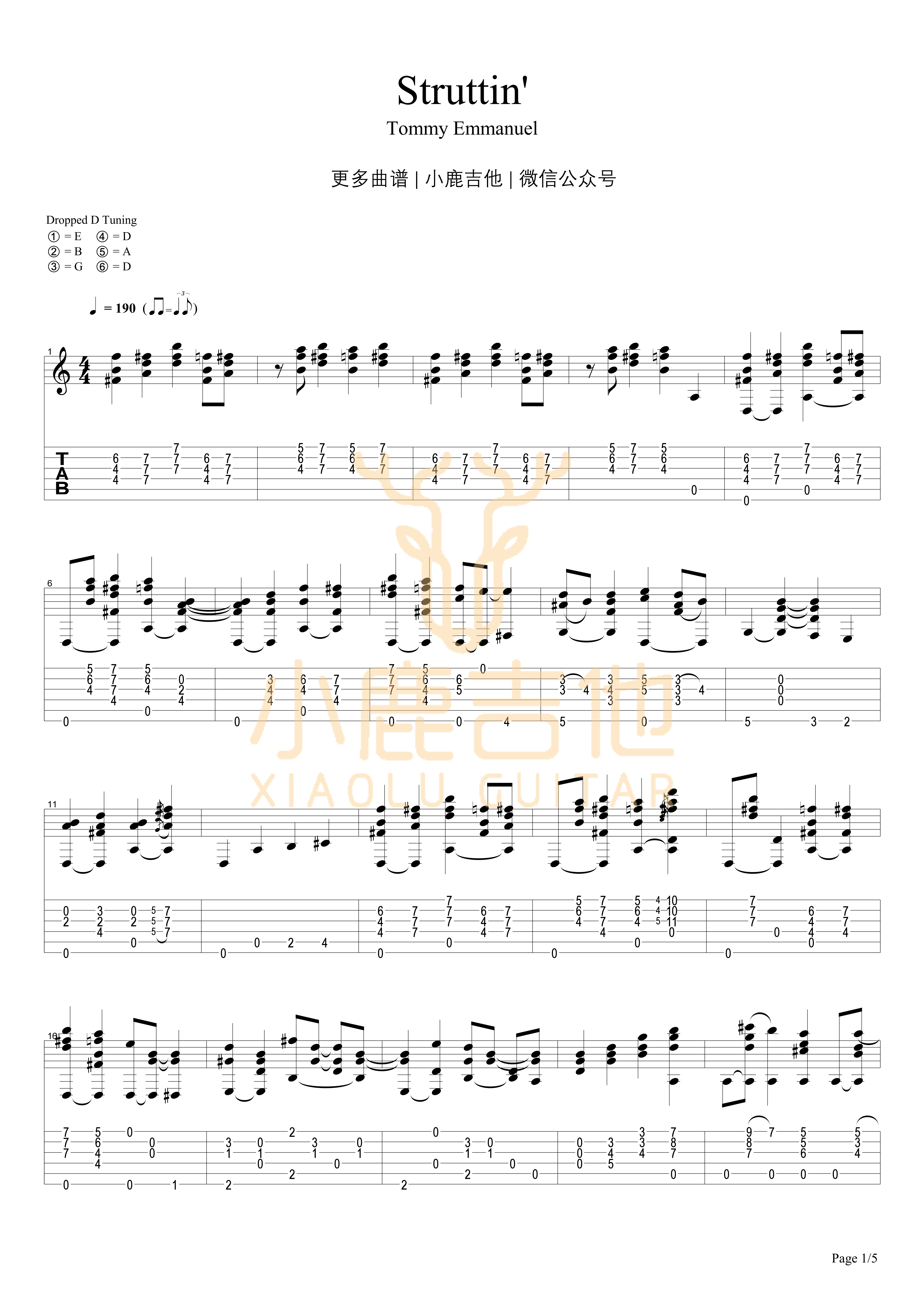 曲谱介绍: struttin'Tommy《struttin'TommyEmmanuel》吉他独奏谱,共有5张高清图谱。