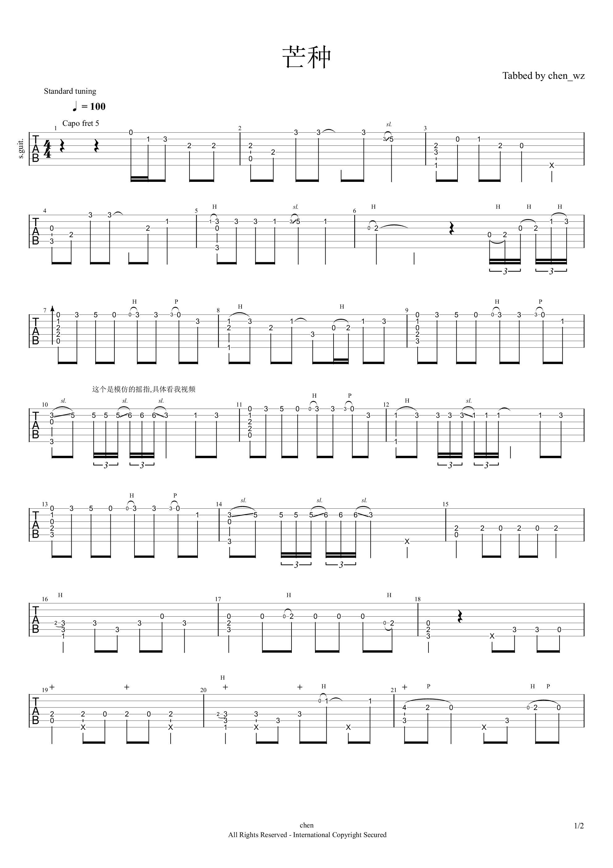 当前位置:琴谱网>吉他独奏>芒种