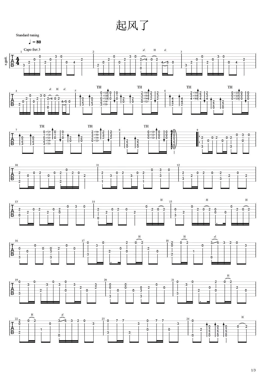 曲谱介绍: 起风了指弹谱,简单版编配,起风了吉他独奏谱,Capo夹三品,高橋優创作,一首曾风靡整个抖音的歌曲。琴谱网谱琴友上传分享。