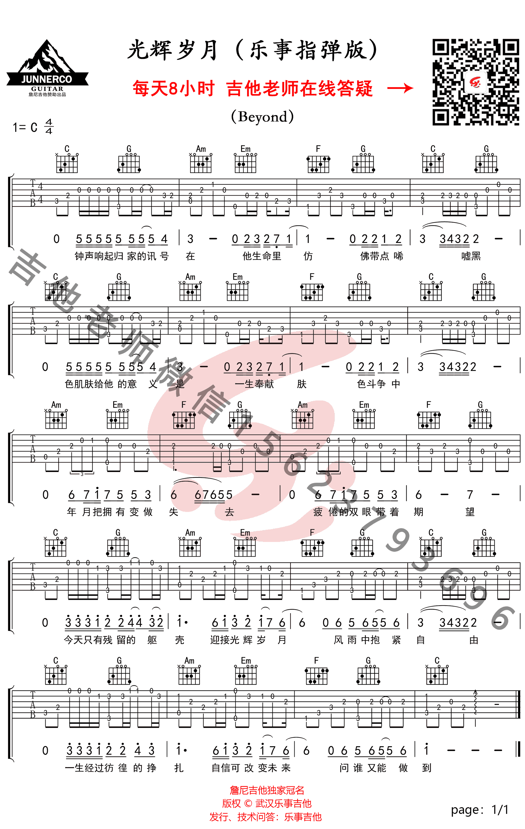 曲谱介绍: 光辉岁月吉他谱指弹版,Beyond经典粤语歌曲,光辉岁月吉他独奏谱,感谢乐事吉他编配制谱,并为琴友们带来曲谱配套指弹教学视频,琴谱网更新分享。 每位吉他爱好者的心中都有一个家驹梦,熟悉的旋律燃起我们内心的激情,让处在逆境中的人仿佛看到了希望,不由自主的坚强起来,让我们重温光辉岁月,弹响一曲理想之歌。
