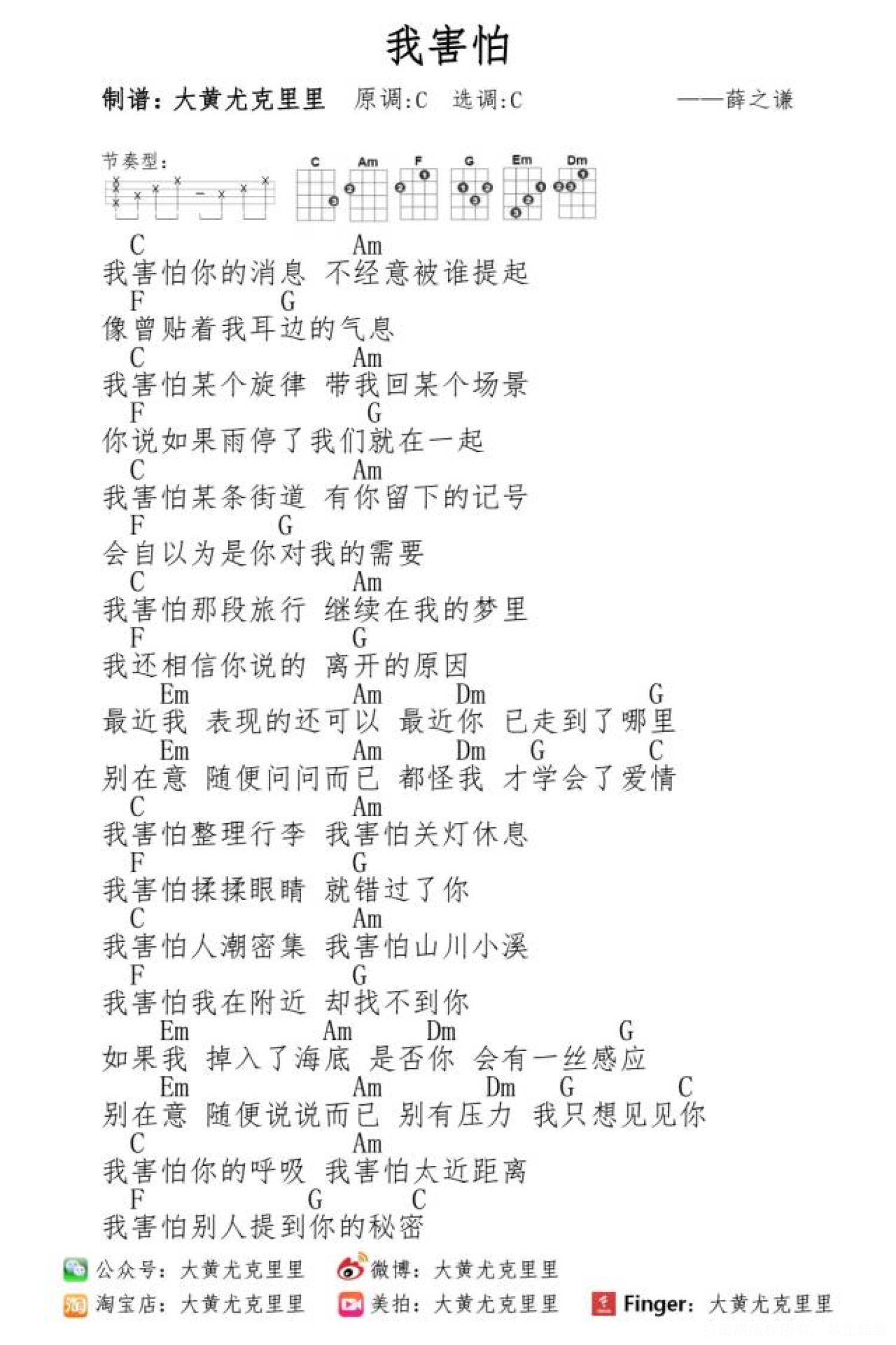 我害怕尤克里里谱