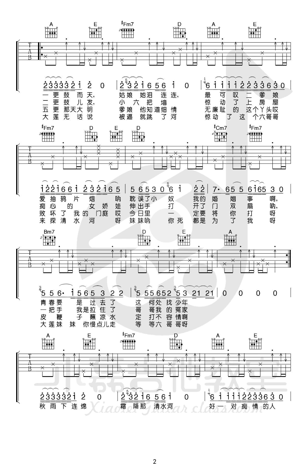 探清水河吉他谱 - 张云雷/晓月老板 - A调吉他弹唱谱