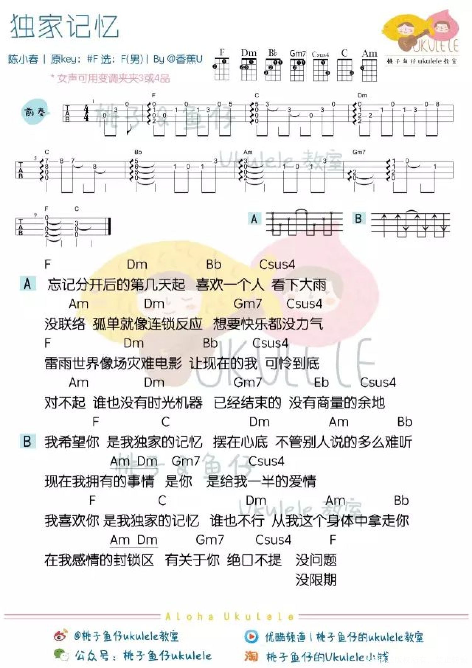 独家记忆尤克里里谱