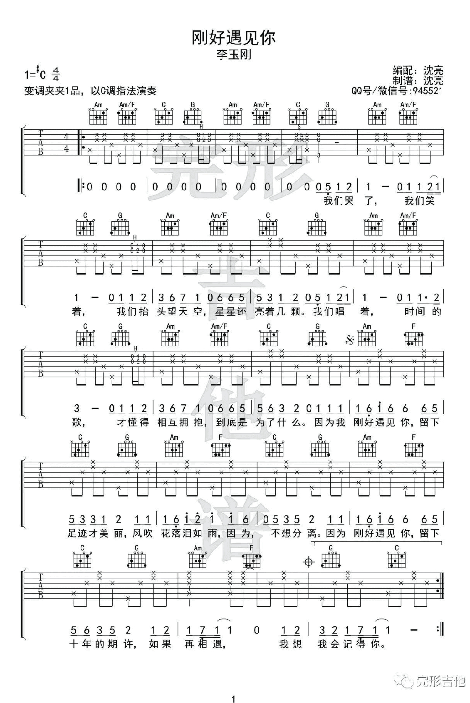 吉他弹唱C调来源:完形吉他--沈亮1368 浏览2018-03-19 13:34发布图谱共2页