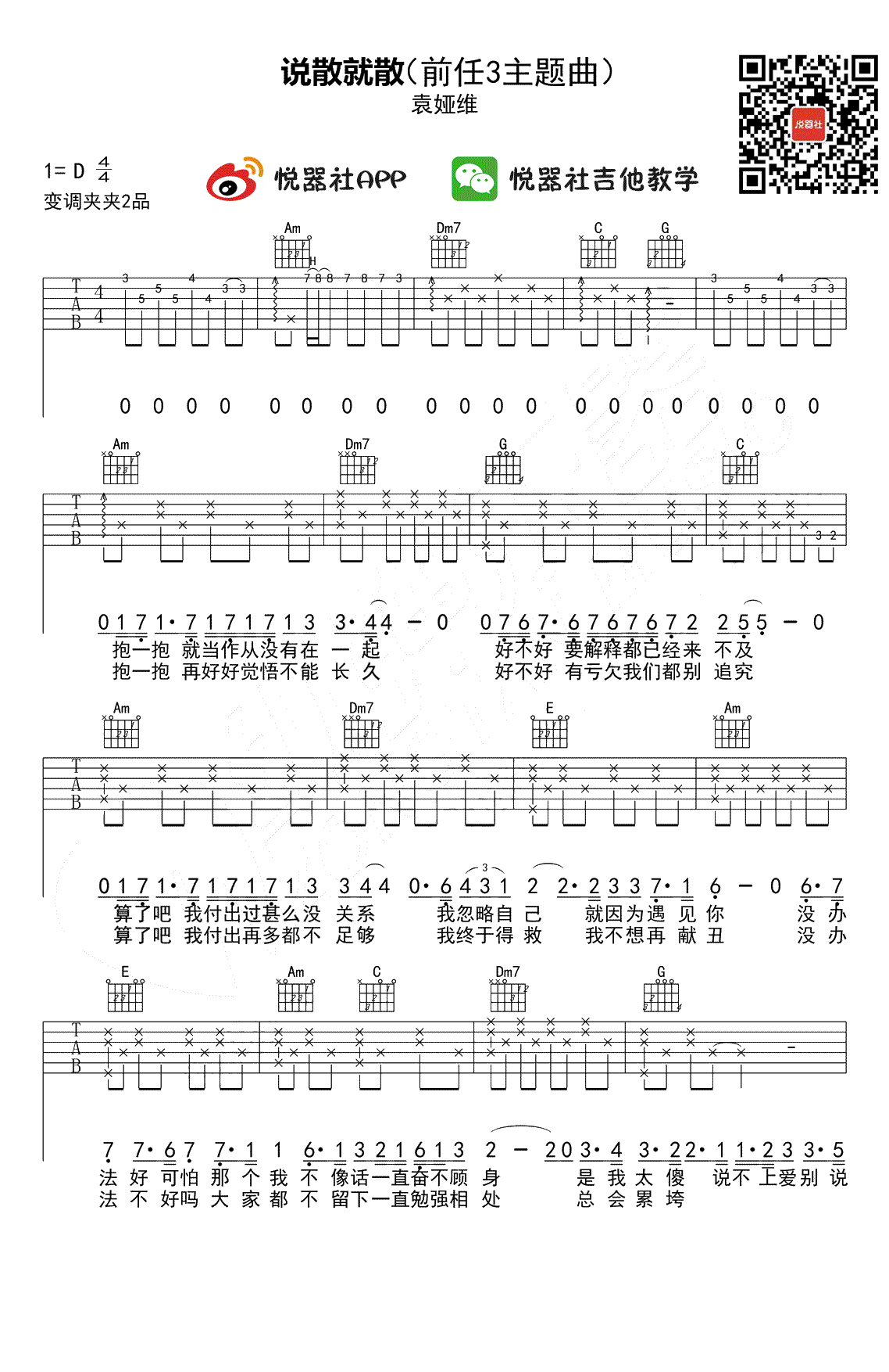 说散就散吉他谱 - 袁娅维 - D调吉他弹唱谱