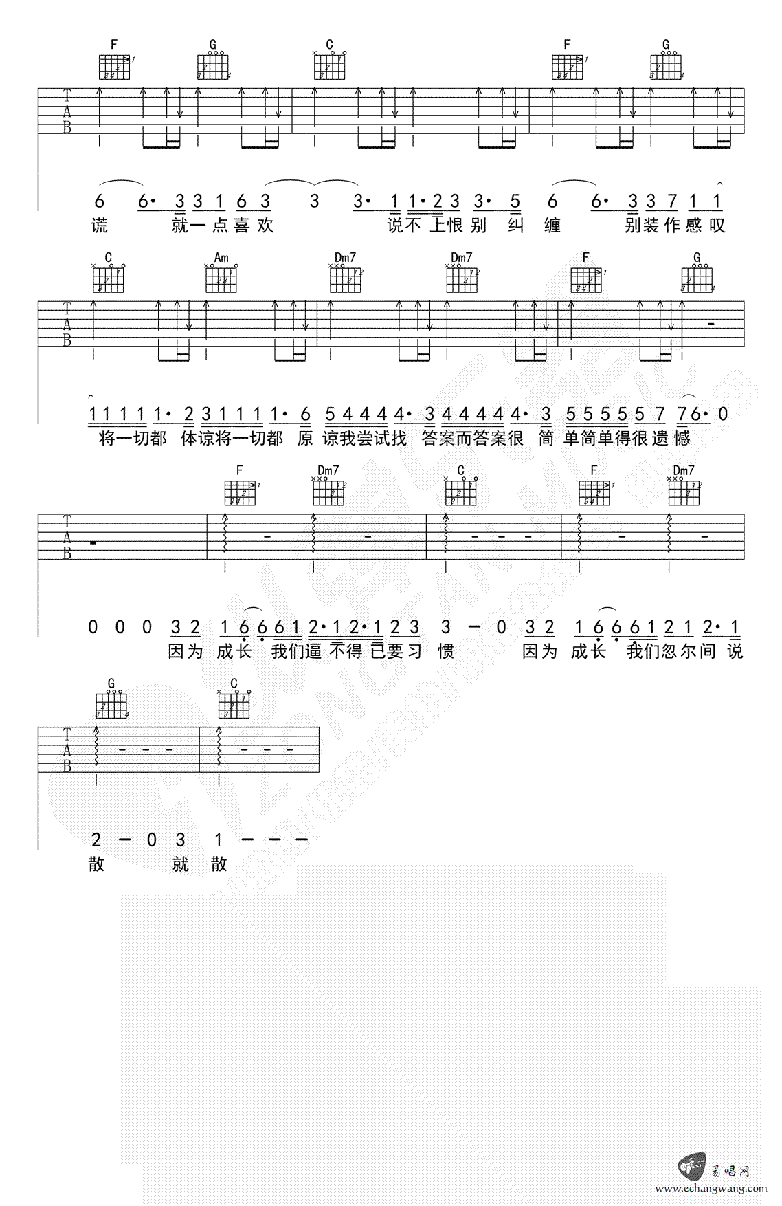 当前位置:琴谱网>吉他弹唱>说散就散