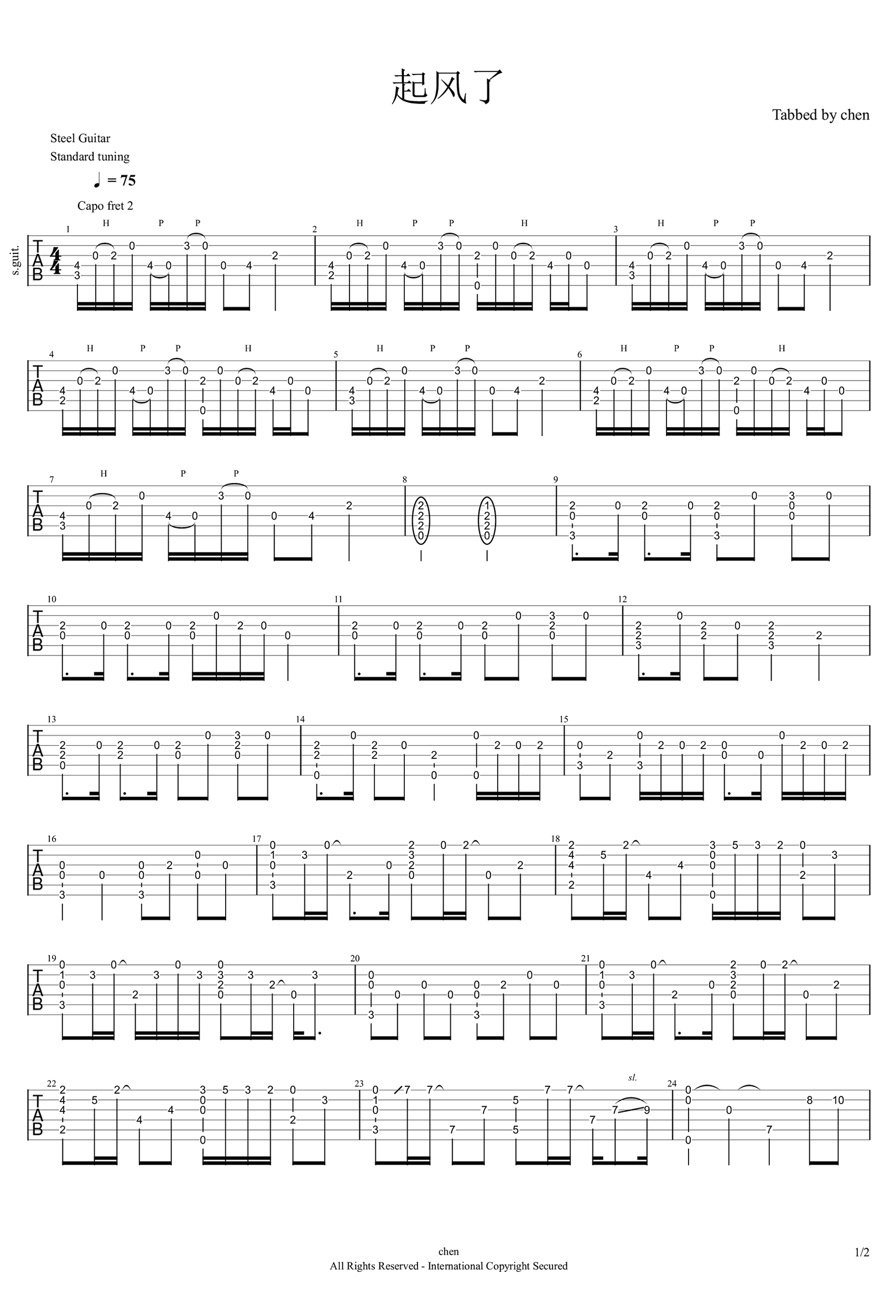 曲谱介绍: 起风了吉他谱指弹版,人气抖音歌曲《起风了》吉他独奏曲,买辣椒也用券演唱,图片谱格式,Capo夹二品,感谢chen的编配和提供示范视频,琴谱网更新收藏分享。这首翻唱高桥优歌曲人气不断攀升,受到了广大网民的喜爱,而这首歌的原版《ヤキモチ》旋律,有兴趣的也可以听它一听。