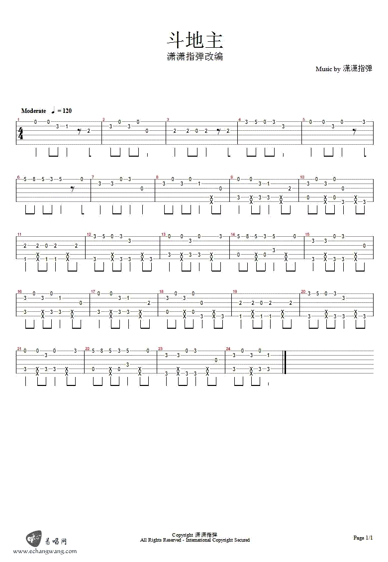 曲谱介绍: 斗地主指弹吉他谱,全民游戏《斗地主》主题曲,经典BGM指弹吉他谱,感谢潇潇指弹的编配和提供演示和吉他教学视频,琴谱网上传收藏。