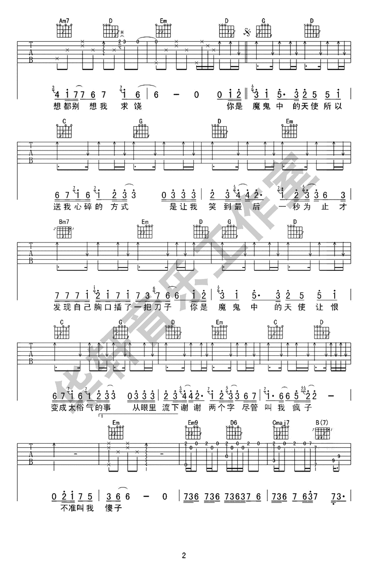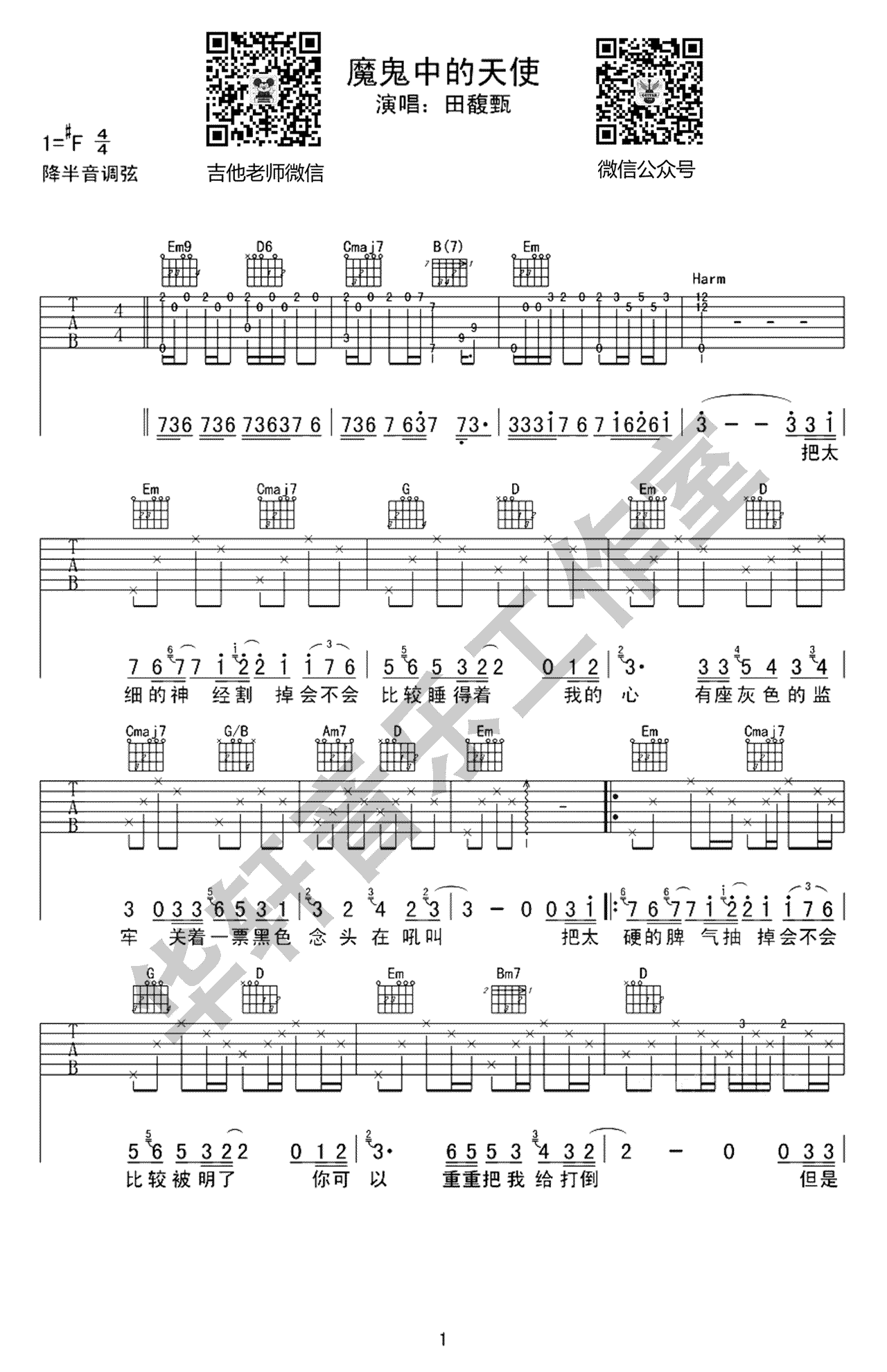 魔鬼中的天使吉他谱 - 田馥甄 - 吉他弹唱谱